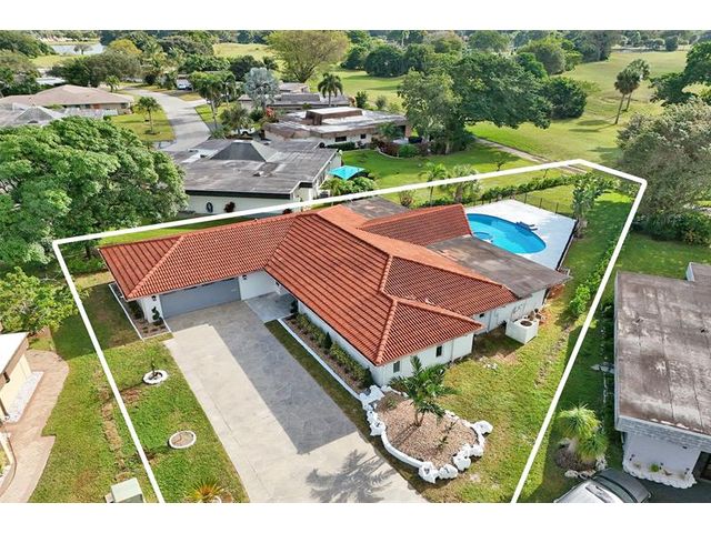 Welcome to this beautifully updated 3-bedroom, 2-bath home with a bonus room, offering an open, light-filled layout perfect for entertaining. Features include a renovated kitchen, newer bathrooms, vaulted ceilings, and impact windows and doors. The oversized garage accommodates 2 cars plus a golf cart. Step outside to a newly refinished pool deck, heated hot tub, and fresh landscaping with serene golf course views. Located in the desirable Woodlands Country Club community, residents enjoy a peaceful, resort-style lifestyle with scenic streets, lush greenery, and an inviting neighborhood feel. Schedule your showing today!