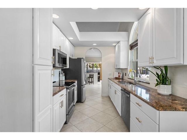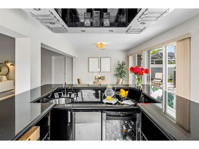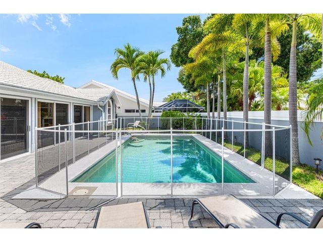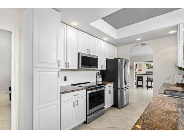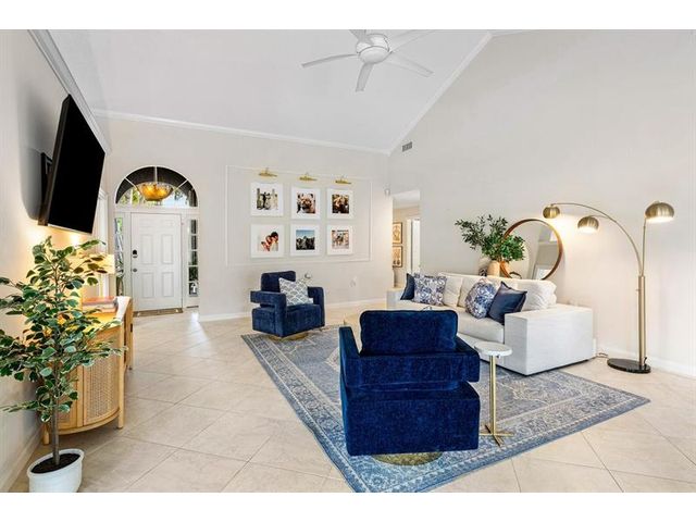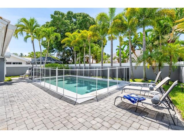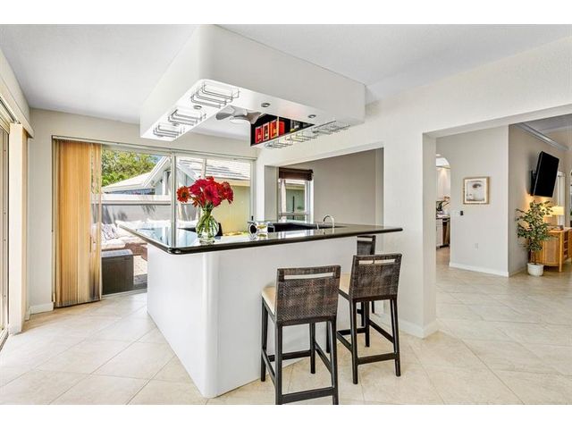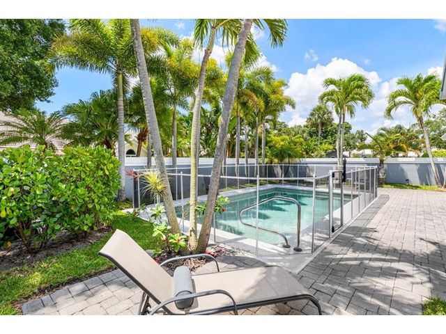 Experience golf club living without membership fees in gated Bear Island! This home near Bear Lakes Country Club’s Jack Nicklaus-designed courses sits on a large lot, offering 2,271 sqft with 3 bedrooms and 2 baths. The split floor plan includes vaulted ceilings, tile floors, recessed lighting, and sliders to a patio and pool. The updated kitchen boasts wood cabinets, granite counters, and stainless appliances. The primary suite features vaulted ceilings, an ensuite with soaking tub, and a walk-in closet. The guest wing has two bedrooms, a full bath, laundry room, and an air-conditioned 2-car garage. The yard includes a pool and patio deck. Low HOA includes a 24/7 manned gate, lawn service, and water. Conveniently located near I-95, PBI Airport, and Rosemary Square.