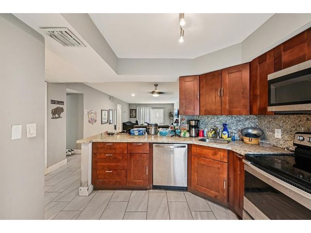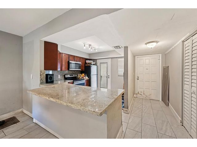 Bright and nicely updated 2 bedroom 2 bathroom ground level unit, split floor plan, parking space up front, stainless steel appliances, Modern kitchen with granite countertops, tile flooring throughout, large primary bedroom with a walk-in closet. Guest bedroom is spacious with ample closet space, Bathrooms include, shower & bathtub with granite counter tops, This all-ages community offers a pool, gated security, and includes basic cable and water. #111 is Move-in ready and easy to love!