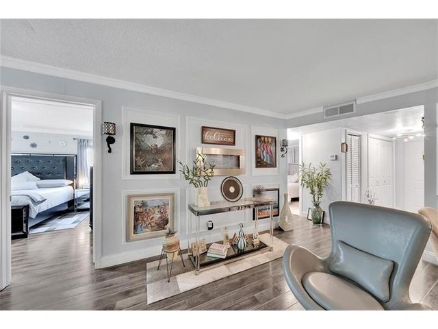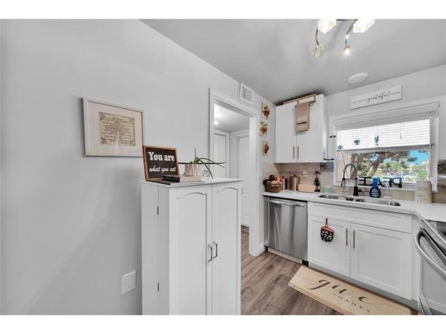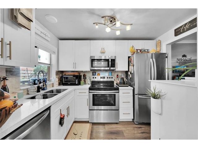 WOW look no further! Beautiful corner unit featuring a serene water view and a fully enclosed patio with impact windows, perfect for relaxing year-round. This home offers a remodeled kitchen and bathrooms, stainless steel appliances, and newer flooring throughout. Enjoy modern touches including no popcorn ceilings and custom blinds that provide exceptional privacy. Truly move-in ready and meticulously maintained. (partially furnished)