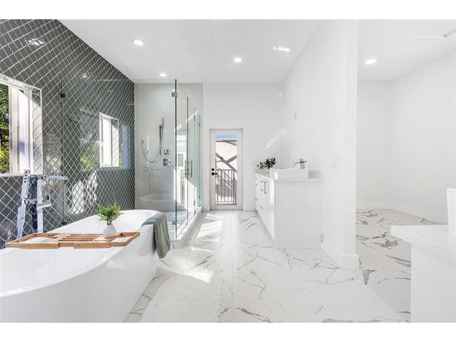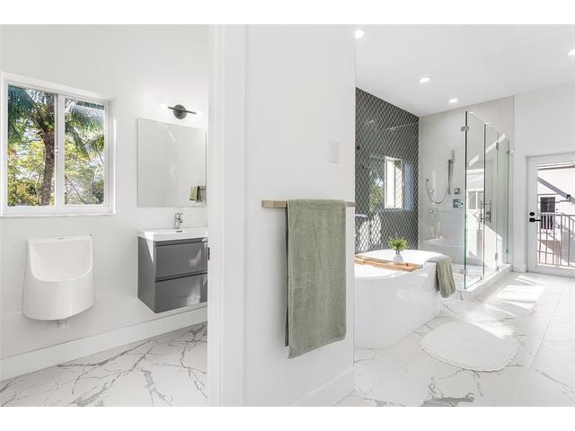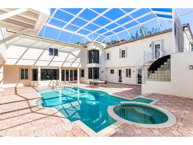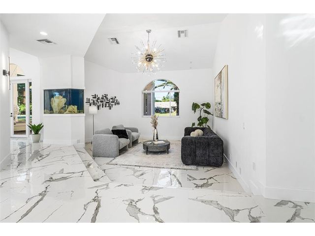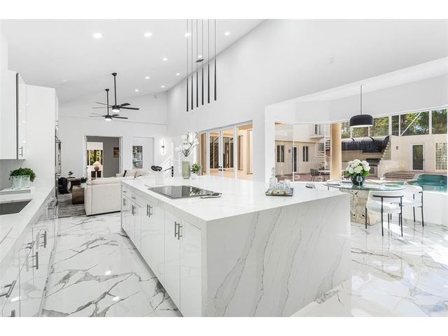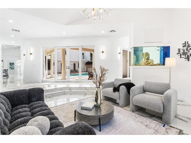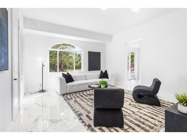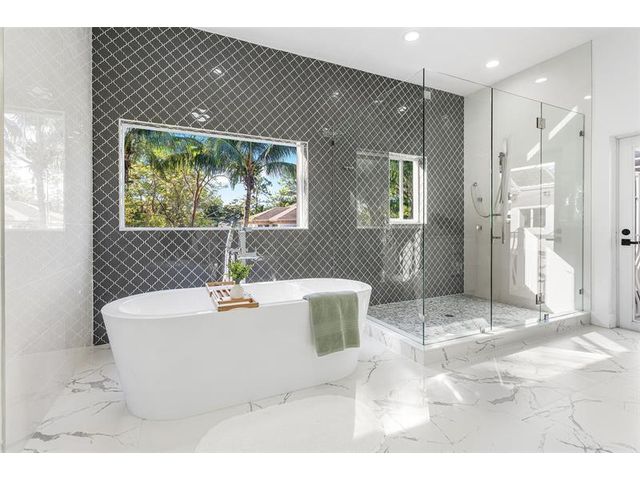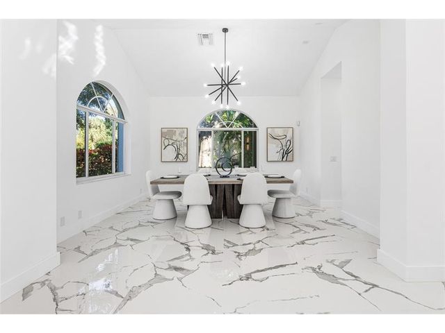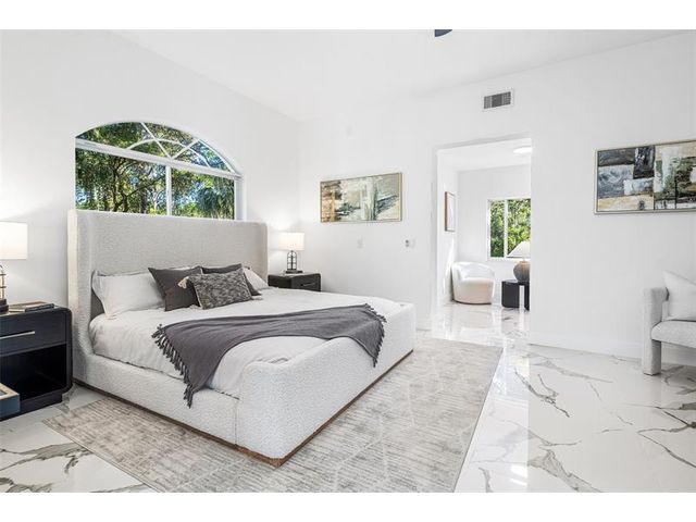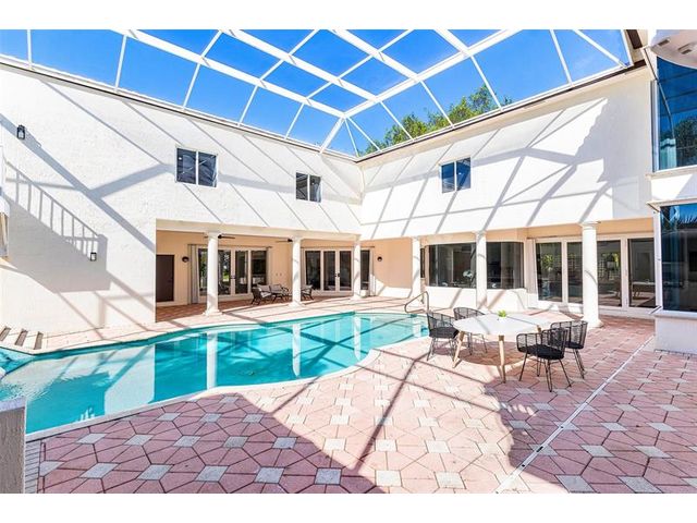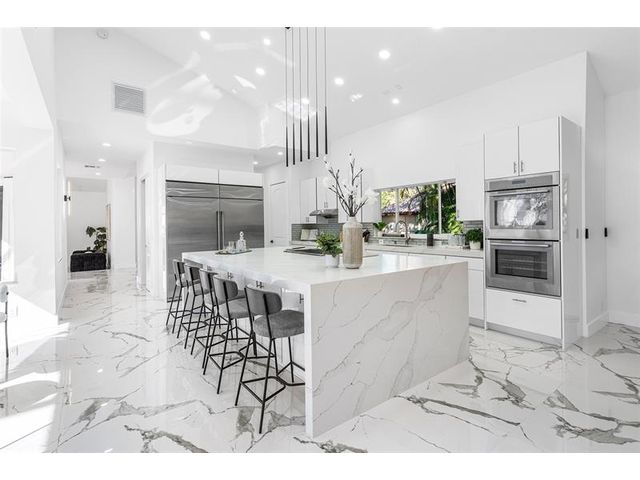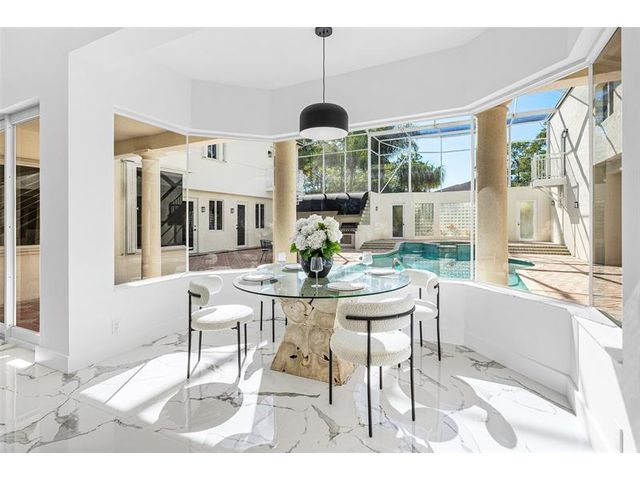 Situated on a RARE waterfront lot in Pine Tree Estates with a preserve beyond (no rear neighbors), is this beautiful & perfectly renovated courtyard estate home. Multiple sundrenched living areas & exceptionally large bedrooms with ensuite bathrooms & sitting areas provide comfort & privacy for family, guests & the in-laws. A stunning and sleek new kitchen with a large island, Top shelf commercial grade appliances, quartz counters/waterfalls & butted glass windows adds to the homes splendor. The primary suite is luxurious with a stunning spa like bath. Impressive curb appeal with a porte cochère, expansive circular driveway, & sprawling front lawn hints at its grandeur. Multiple glass doors open to the resort style courtyard with an oversize pool. Perfect for Multigeneration households.