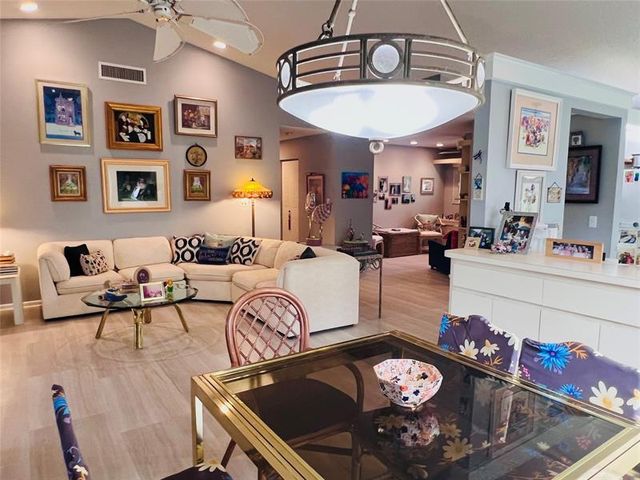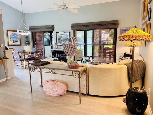 Bright and Open 2nd Floor 2-Bedroom, 2-Bathroom Condo with an added Den/Office/potential 3rd Bedroom and Large, Enclosed Air-Conditioned Lanai. GORGEOUS and PEACEFUL Water Views! Updated Luxury Vinyl Plank Flooring throughout. Warm & Welcoming Unit with Over 1700 sf of Living Area Under Air. New Microwave & 2-Year Old Dryer. Updated Electrical Panel. Accordion Shutters Throughout for Easy Hurricane Prep. Built-ins Create Extra Storage and a Convenient Murphy Bed with New Mattress is in the 2nd Bedroom for Guests. Most Furniture is Included! Quick Closing if Desired. Palm Chase is a Desirable Community Nestled Behind a Church/Seminary 1/4 Mile from the Street to a Gated entrance. Amenities include a Temperature Controlled Pool, Tennis, Pickleball, Hot tub, Sauna, Fitness Rooms & More!
