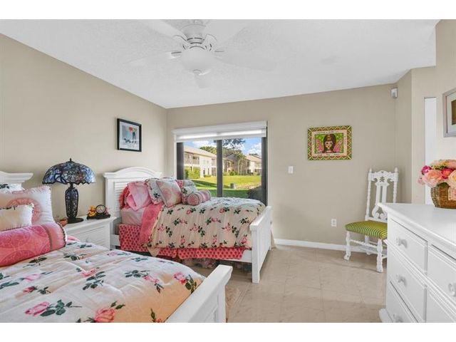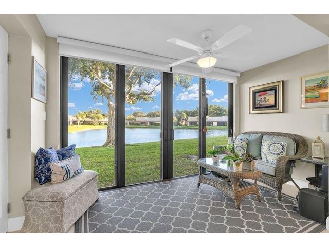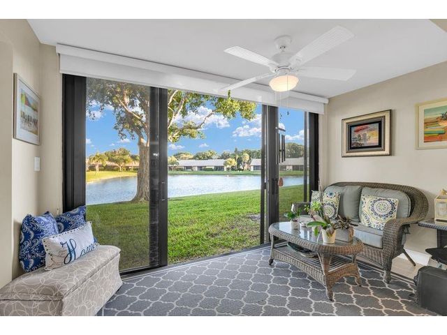 Beautifully maintained 2 bed 2 bath first floor waterfront corner unit in the desirable gated community of Boca Glades. Enjoy beautiful lake views the moment you enter. Full impact windows and sliders throughout with an enclosed patio for added living space. Updated kitchen offers ss appliances, granite countertops, and ample storage. Both bedrooms are true primary suites with custom closets and modern ensuite baths. Primary suite includes French doors to the patio, while the second suite features impact sliders with direct lake access. Boca Glades is an all-ages community known for its quiet surroundings, well-kept grounds and convenient lifestyle. Ideally located near A-rated schools, dining, shopping, and beautiful beaches, this home offers a prime location and serene waterfront living.