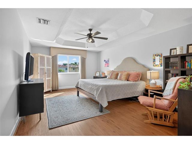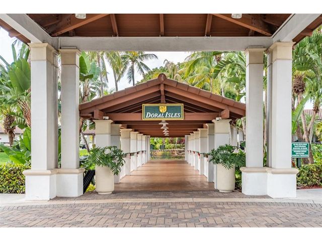 Impeccable home located in the highly sought-after Doral Isles community. This property sits on the best corner lot, offering exceptional privacy within the neighborhood. The spacious floor plan features 3 bedrooms + a loft that can easily be converted into a 4th bedroom, along with 3 full bathrooms. Beautiful hardwood floors throughout, generous living areas, and soaring ceilings in the family room create an open and inviting atmosphere. The upstairs bathroom has been tastefully renovated, and the home has been exceptionally well maintained. Additional features include an extended screened patio, accordion shutters, and more. Move-in ready and a pleasure to show. Enjoy resort-style amenities at Doral Isles, including pools, clubhouse, gym, playground, basketball & much more!