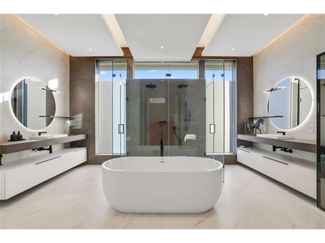 ABSOLUTELY STUNNING!! Spectacular 7,577 sq ft smart home, completed in 2025 and set on a secluded 1-acre lot. Five bedrooms, a dedicated home theater, and a separate guest house, perfect for entertaining. Gourmet Italian kitchen with its own butler’s pantry. Spacious open living area. Remarkable primary suite with dual closets with built-ins and an en-suite boasting dual vanities, a roman tub, and a massive walk-in shower. Resort style back yard features an infinity pool, jacuzzi, pergola, and a fully equipped entertainment area with a kitchenette. Fully gated and turfed back yard.