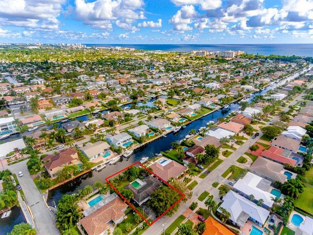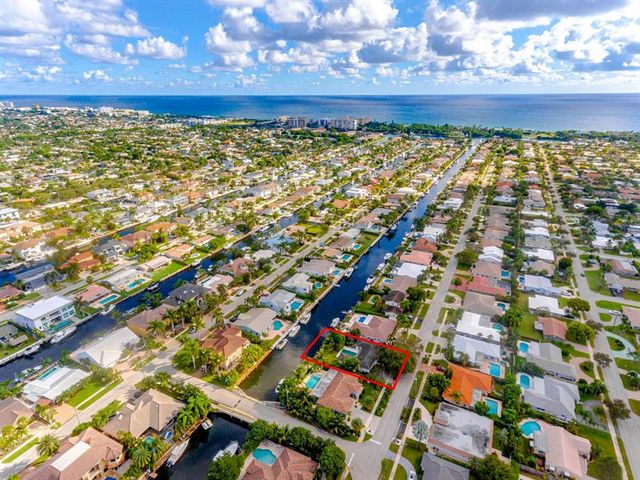 80 Feet of Waterfront - No Fixed Bridges! Incredible 8,800 +- sf waterfront lot located in prestigious Lighthouse Point! Easy access to the Intracostal and Hillsboro and Boca inlets. Batter Piles, cap and new 80' concrete dock completed in 2024. Perfect for your custom home or spec build. Lighthouse Point has it's own independent police & fire departments plus no mandatory homeowners association. This highly sought after neighborhood is within walking distance to updated Dan Witt Park and conveniently located to the yacht and tennis club plus numerous local restaurants. Currently there is an approximately 1,600 square foot original condition 3 bedroom, 2 bath, 1 car garage home on the property. The existing residence is being sold as-is. The property is being sold for land value only.