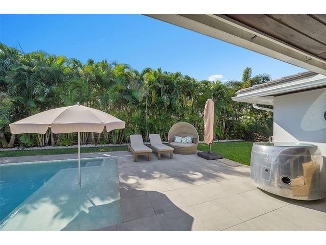 Completely renovated 3BR/2.1BA East Boca home on a quiet dead-end street. Features include a fully fenced tropical backyard with a heated saltwater pool, Hot Springs jacuzzi, outdoor shower, new landscaping, energy-efficient water heater, new outdoor lighting, PVC plumbing, and full impact windows/doors. Interior highlights include an open kitchen with quartz counters, stainless steel appliances, gas stove, and Italian porcelain tile throughout. Two-car garage with new high-efficiency A/C unit and an interior laundry room. Modern finishes throughout with a private outdoor setting ideal for year-round enjoyment. Entire home has been remodeled. Move-in ready. No HOA.