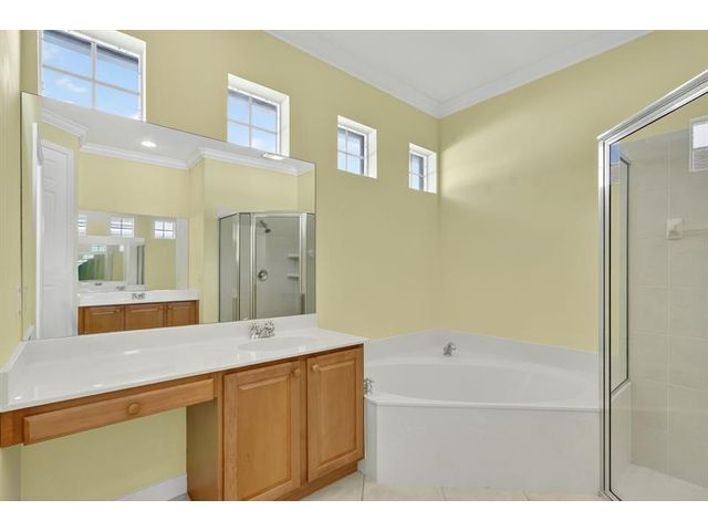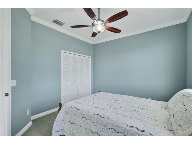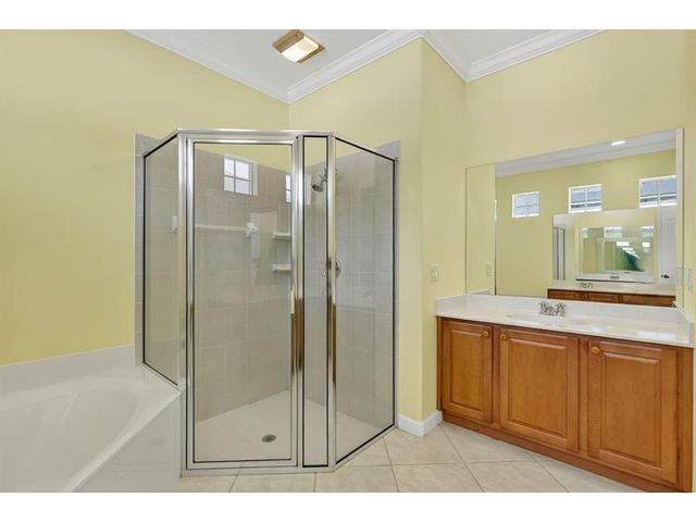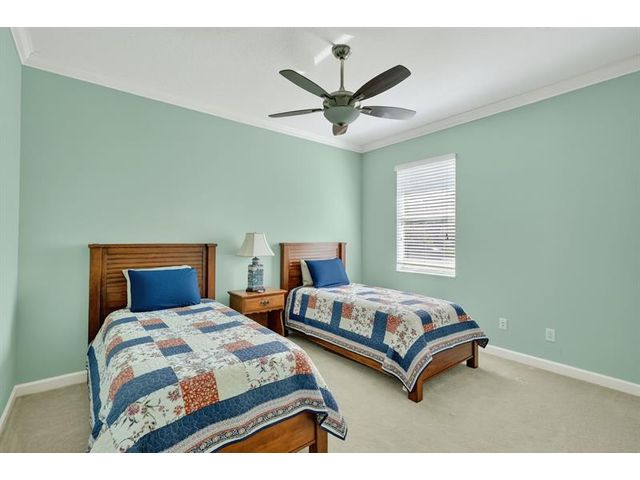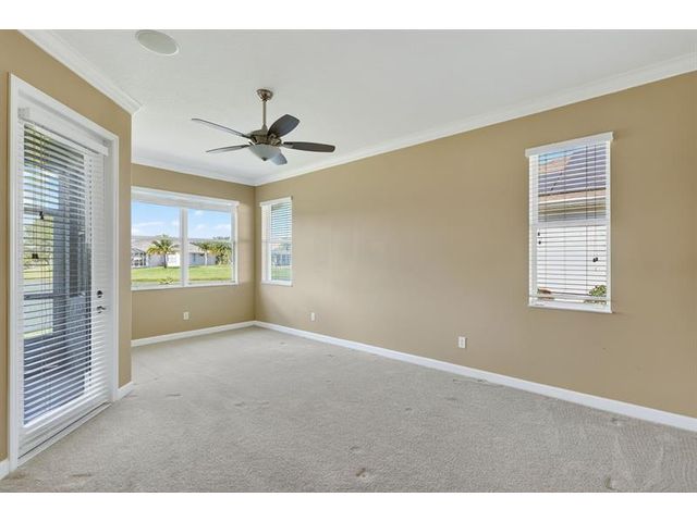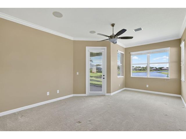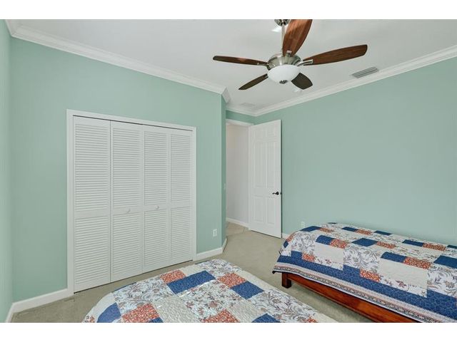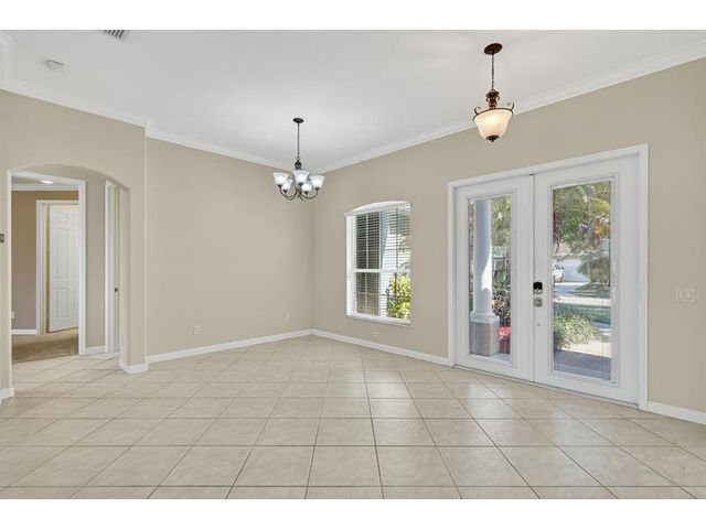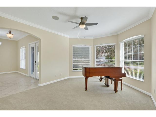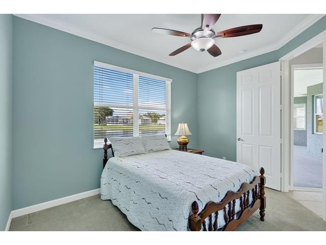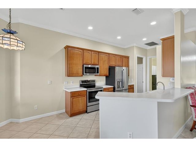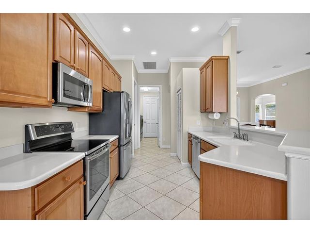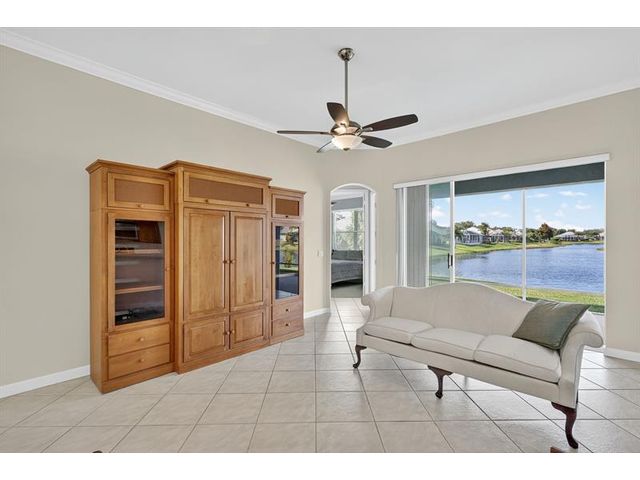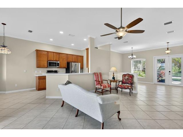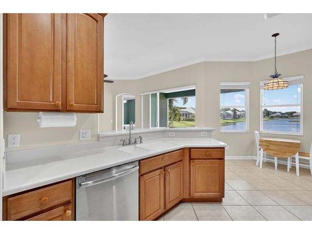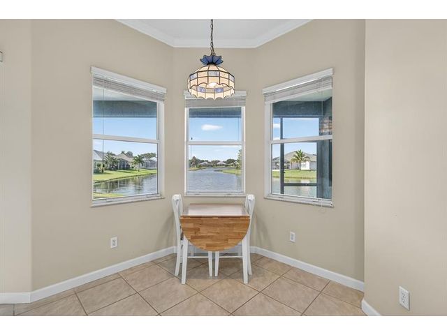Located in desirable Hammock Lakes, this immaculate lakefront home offers 3 bedrooms, 2 baths, plus a den/4th bedroom. Features a 2024 roof and whole-house solar panels. Inside, enjoy elegant 18" diagonal tile flooring and crown molding. The kitchen boasts wood cabinetry, updated countertops, and top-tier appliances. High volume ceilings and an open, split floor plan with multiple living and dining areas create a spacious feel. Living areas have tile; bedrooms and formal living room are carpeted. The large laundry room includes extra cabinets and a utility sink. Relax on the screened back patio with stunning lake views. The community offers natural gas plus pool, basketball, tennis, and pickleball courts. A must-see home—schedule your tour today!