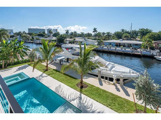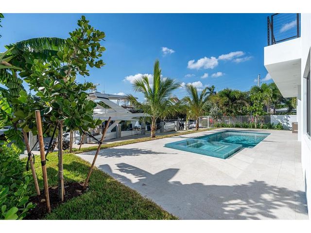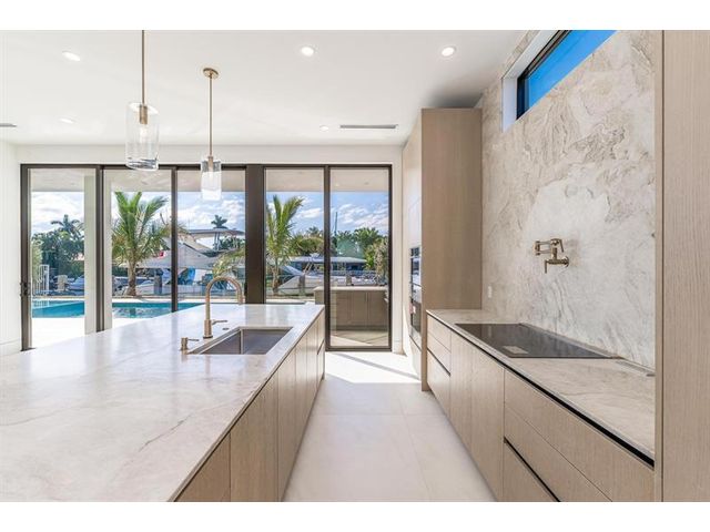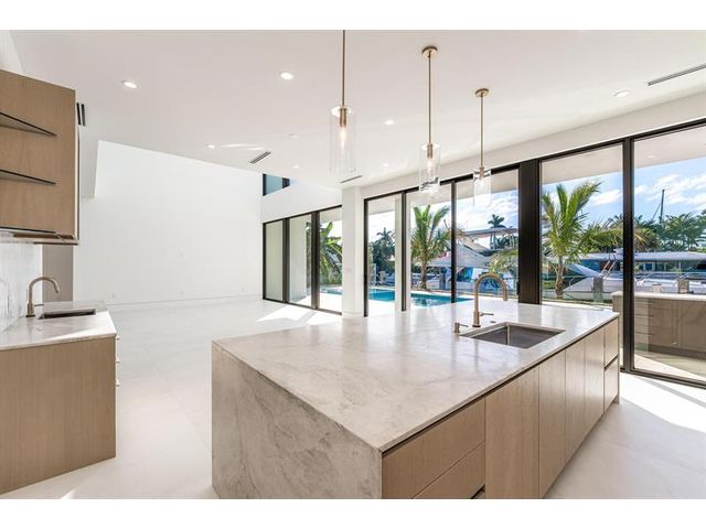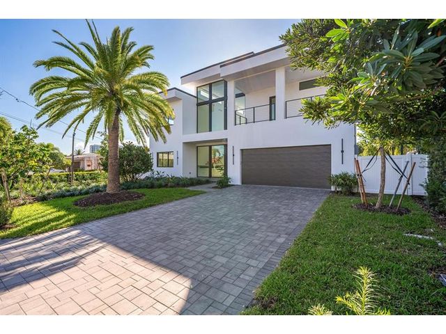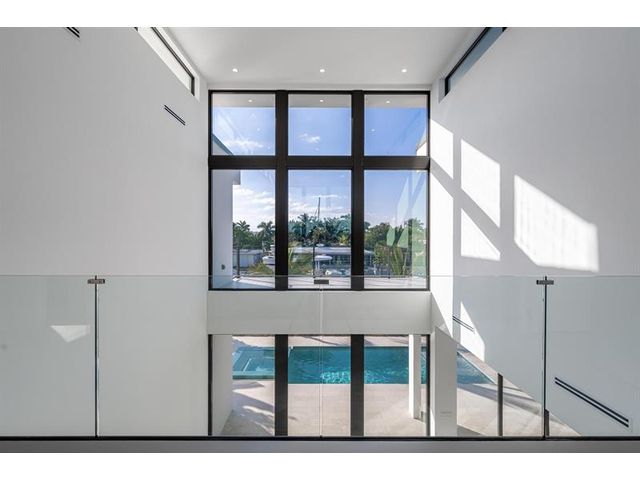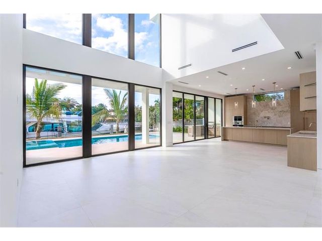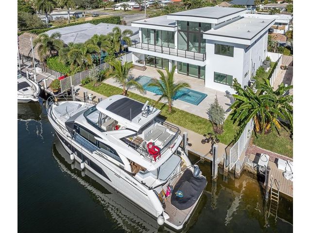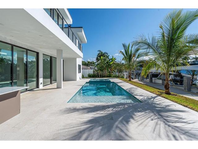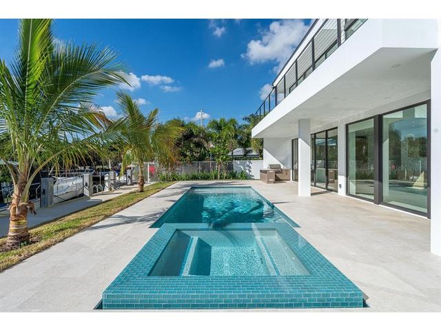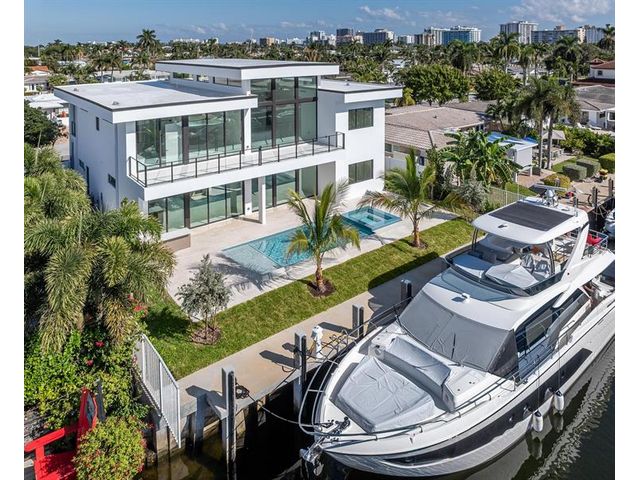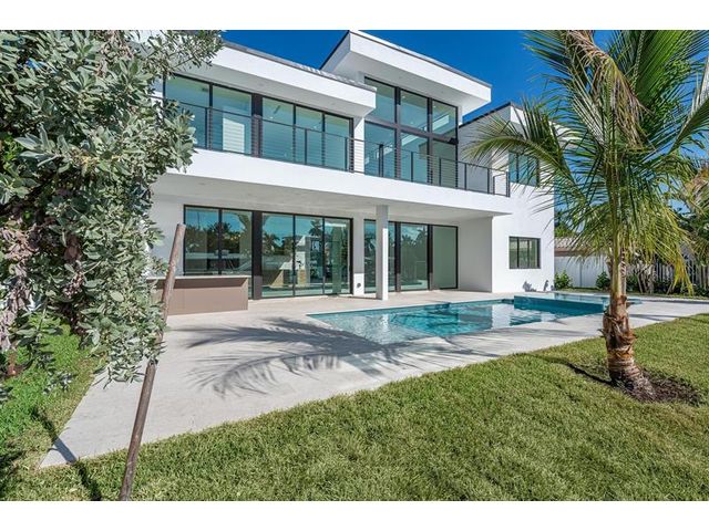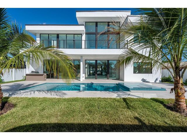 Brand-new modern two-story waterfront home offering the South Florida lifestyle that you dream about. Thoughtfully designed with floor-to-ceiling glass, a steel/wood/glass floating staircase, 4x4 porcelain stone flooring and water views from nearly every room. The chef’s kitchen features Sub-Zero and Wolf appliances, matte-gold fixtures, a 5x10 island and wet bar. The 5BR/5BA/2-car garage layout includes a stunning owner’s suite with dual balconies, spa-style bath, tastefully designed walk-in closet and serene waterway vistas. Outside, enjoy generous space to entertain, a 17x32 pool, spa, gorgeous landscaping, foliage/greenspace (flowering trees, palms and clusia), privacy fencing, full summer kitchen and new 75' dock (currently hosting 62' Azimut). A refined waterfront estate ready now.