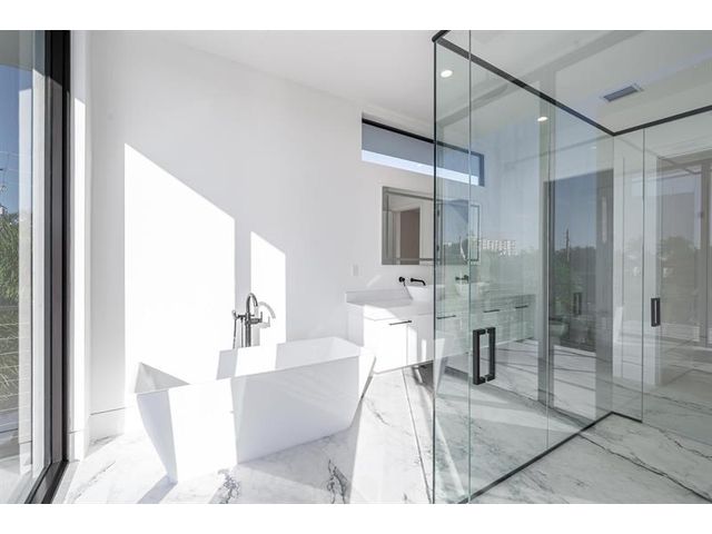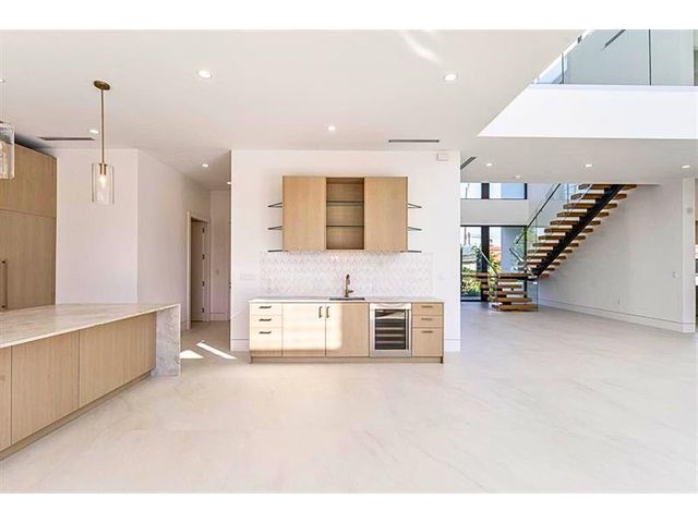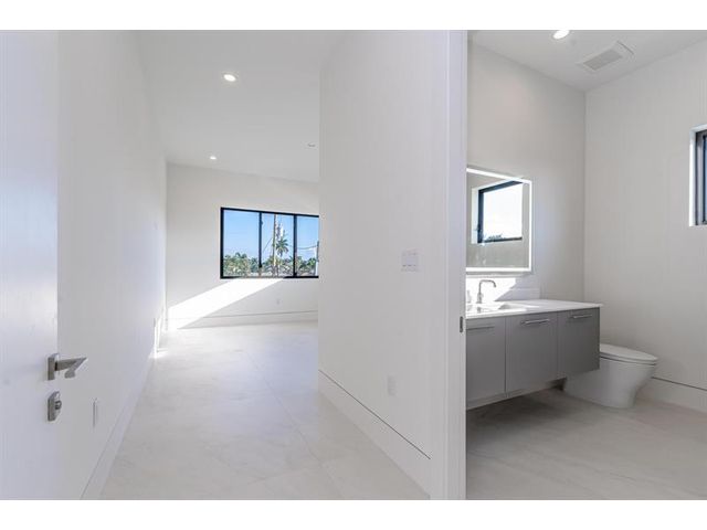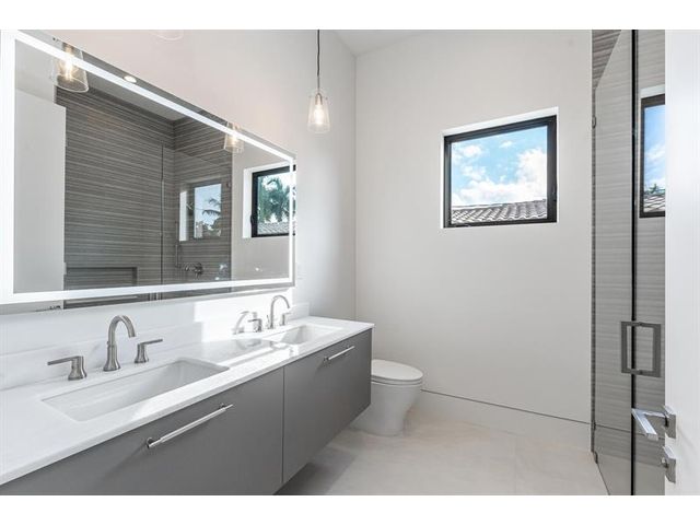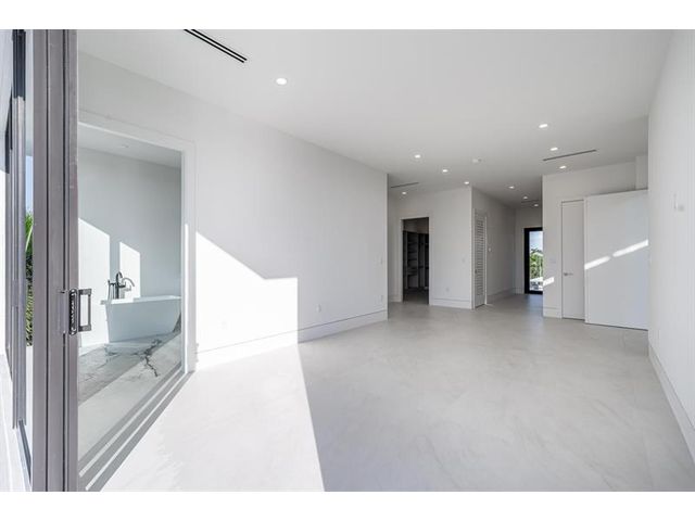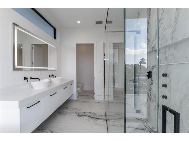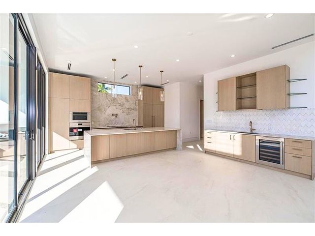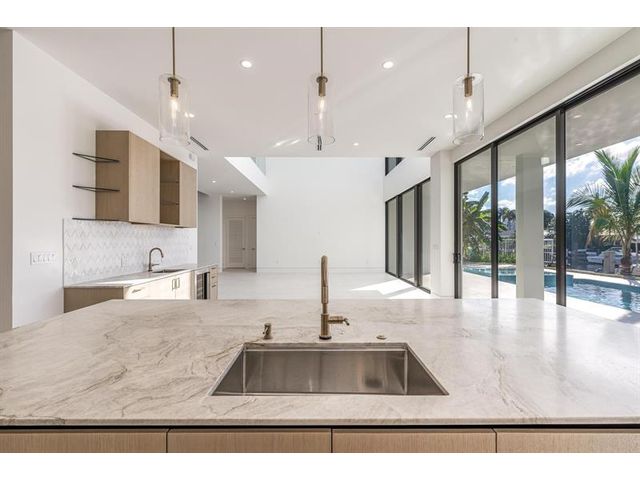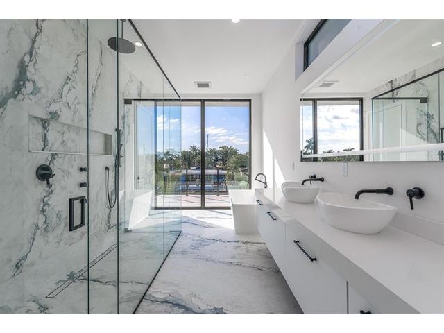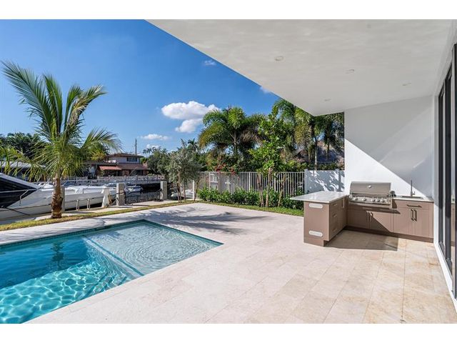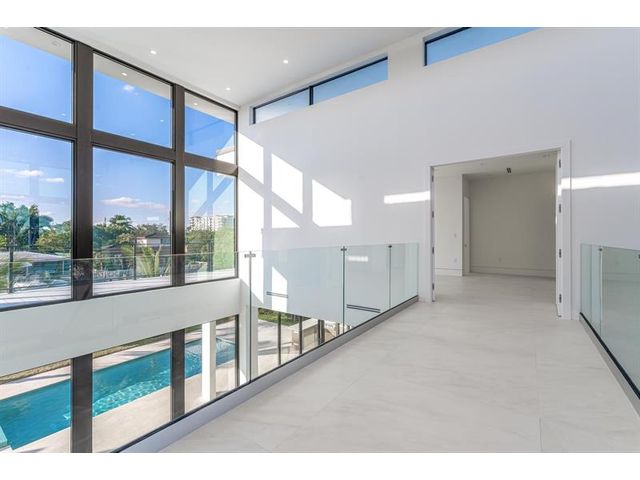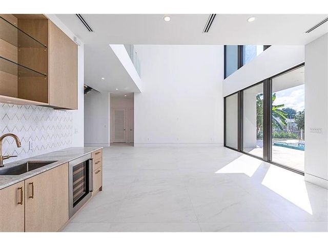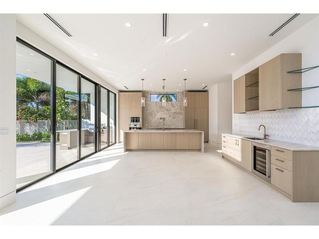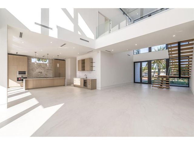 Brand-new modern two-story waterfront home offering the South Florida lifestyle that you dream about. Thoughtfully designed with floor-to-ceiling glass, a steel/wood/glass floating staircase, 4x4 porcelain stone flooring and water views from nearly every room. The chef’s kitchen features Sub-Zero and Wolf appliances, matte-gold fixtures, a 5x10 island and wet bar. The 5BR/5BA/2-car garage layout includes a stunning owner’s suite with dual balconies, spa-style bath, tastefully designed walk-in closet and serene waterway vistas. Outside, enjoy generous space to entertain, a 17x32 pool, spa, gorgeous landscaping, foliage/greenspace (flowering trees, palms and clusia), privacy fencing, full summer kitchen and new 75' dock (currently hosting 62' Azimut). A refined waterfront estate ready now.