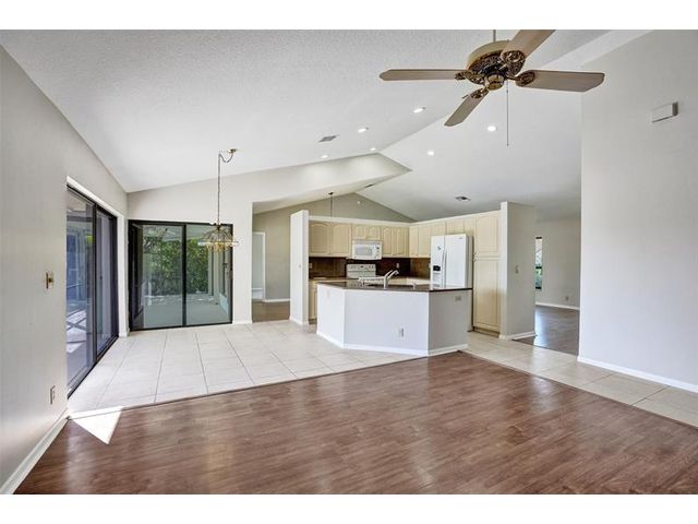 This 4 bedroom, 2 full bathroom home has one of the BEST lake views in Sun Valley 2. This home was recently painted (interior), including the ceilings. The location of this home is one of the best in the community. Very quiet surroundings, peaceful and tranquil- you will think you are on vacation when sitting in the backyard/pool area, or just looking outside from the kitchen and screened in patio. This home has an unobstructed full view of the long length side of the lake. This home is perfect for young families and retirement age folks too (and everything in between). Pets permitted in this community. This home has 3 walk in closets.