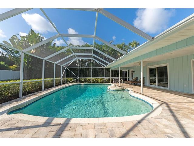 LOCATION is exactly what you FIND with this beautifully made house in Castaway Cove IV. The large 4th bedroom and bath as an In-Law/maid quarters with space to expand. Located closely to the beach and river, you are in the heart of the Fabulous Quaint Town of Vero Beach. This stellar house has IMPACT windows and doors, recently installed new A/C system & roof. The pool has screened patios with views of a beautiful landscaped large backyard for your pets to play. The circular driveway is large and has plenty of room for guests. The driveway leads into the side 2 car garage. This bright and spacious house has plenty of room for hosting with a full bar in Family area. All areas in the home have a full view to the pool with four sliding glass doors that lead to the large back pool patio.