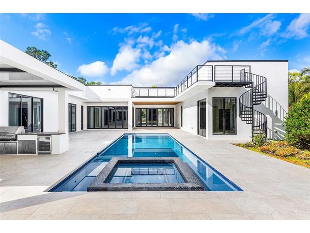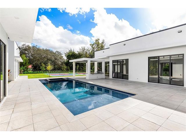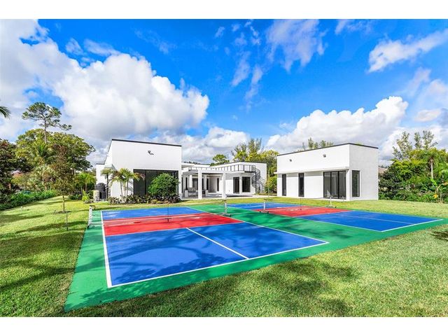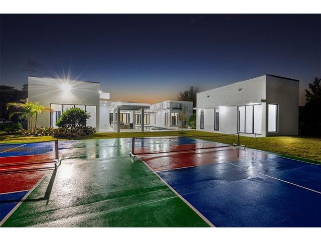 If perfection is what you seek, then this newly constructed home is for you. The main house reflects the highest standard of modern architecture & integrates a light-filled interior featuring high-quality materials with breathtaking outdoor spaces via expansive walls of impact glass thruout. Ultra luxe kitchen offers top-shelf appliances, a sprawling island with Taj Mahal quartzite counters & sleek European cabinets. A flexible design with large living areas, all bedrooms with ensuite baths, media room, gym & guest house provides privacy & enjoyment. The luxurious primary suite is tucked away & boasts a jaw-dropping bath & beautiful views. The resort-style backyard offers a heated pool with spa, summer kitchen, covered porch & pickleball courts. Gold Standard for design, finish & location.