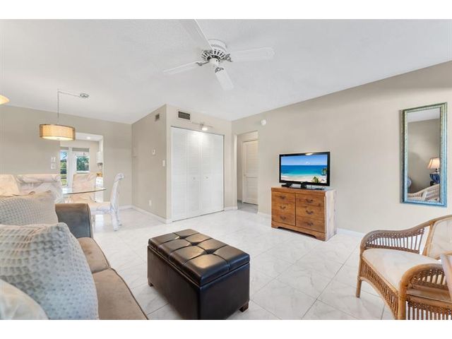 TURN KEY....FIRST FLOOR....ACROSS FROM CLUBHOUSE....BEAUTIFULLY UPDATED....LOW FEES!!! Very Friendly, Fun and Active 55+ Community. Immaculate Unit Features 1 BR and 1 BA, Beautifully Updated Kitchen, Custom Wood Cabinets with Rollouts and Soft Close. Updated Bathroom bright and beautiful. New Tile Flooring, Enclosed Patio/Florida Room with Serene Water Views. AC has New Coils and New Compressor. HWH is Newer. Love where you live close to Beaches and Restaurants. Great Location. Fun Activities; Bingo, Dinner Dances, BBQ's, planned Trips, Clubs & So much more. Assoc. Req's 20% down 700+ CS $40K+ POI NO RENTALS.