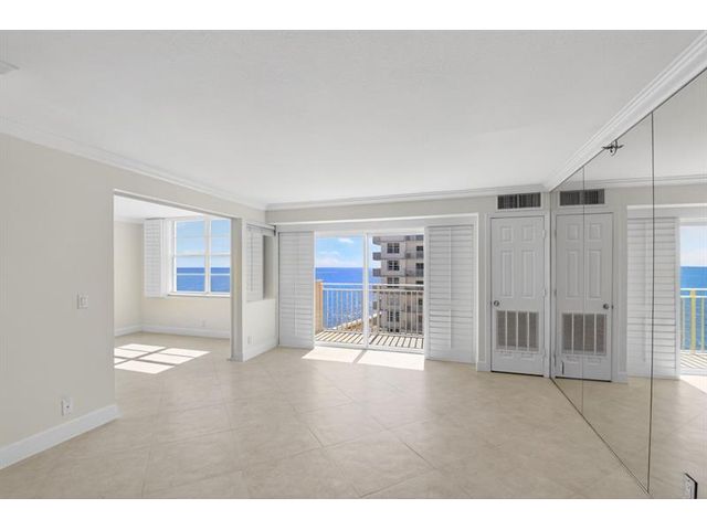 Breathtaking ocean views in this remodeled 2-bed/2-bath condo at desirable 45 Ocean. Enjoy private balcony w/southern exp to sounds of waves & fresh sea air. 45 Ocean is a certified bldg. All concrete restoration complete & assessments fully paid. The spacious primary bedroom has 2 closets and multi-use walk-in, full bath w/tub and glass doors. The second bedroom has own full bath, shower w/glass doors, walk-in closet. The room is flexible w/white, shuttered sliding wall to create option for open flow into the modern open-concept living space—ideal for guests or a home office. White shutters for and sliding doors. Investor-friendly: Rent immediately min. 3 months (1X each 12 mths);perfect for full-time or seasonal living, and investment opportunity. Pet friendly w/ allowing up to 15 lbs.