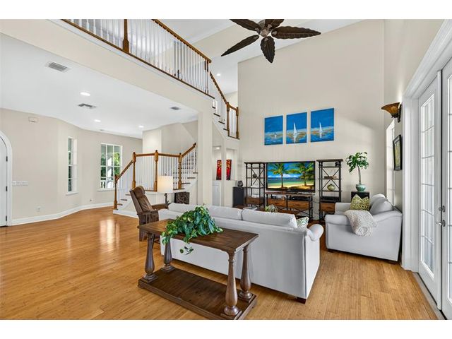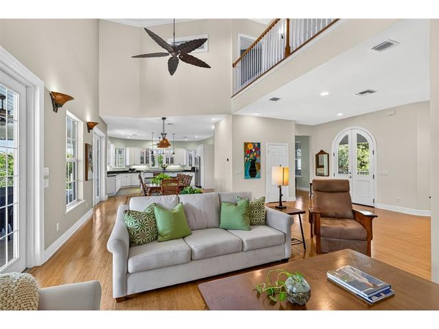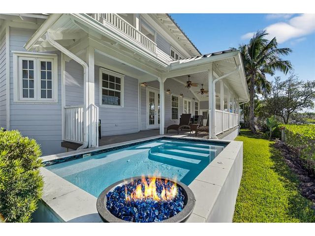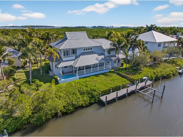 A boater’s dream in gated Riverpoint, this Key West–style home offers 100 ft of deep-water frontage, a 50 ft Trex dock, and a 12,000 lb lift with quick access to the Intracoastal and inlet. Enjoy dolphins, manatees, and birds from your backyard. Outdoor living shines with a heated LED-lit saltwater pool and front and rear porches. Inside features soaring ceilings, an open kitchen with granite and a gas cooktop, bamboo floors, loft, private primary suite, metal roof, new storm shutters, and a 2024 repipe.