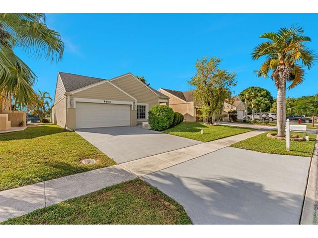 Welcome to South Florida living at Trends of Boca! Experience serene lake views from your living room and primary bedroom, with abundant natural light pouring in through high vaulted ceilings. This beautifully maintained home sits in a peaceful, family-friendly neighborhood known for its lush greenery and quiet streets. With a newer 2022 roof and a full water filtration system, this home is ready for you to make it your own. Enjoy community amenities including a pool, and tennis courts, all with low HOA fees. Ideally located near A-rated schools, shopping centers, and restaurants. Come see why this home and community stand out!