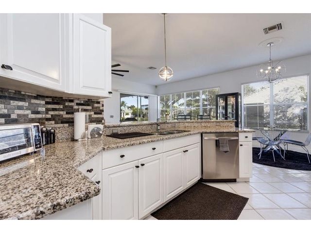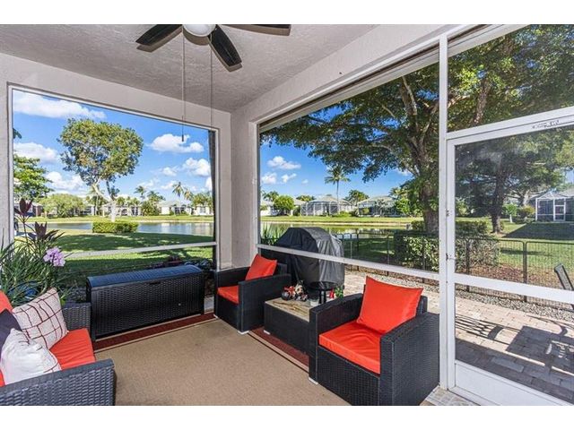 Stunning lakeview villa in guard gated 55+ community of Brittany Lakes. Enjoy resort style living in this bright and spacious 2/2 with den/office that can easily be converted to a 3rd bedroom. Freshly painted home boasts volume ceilings with an open floor plan. Updated kitchen with granite and SS smart appliances (2023) Large primary suite with double closets. Upgraded bathroom with dual sinks, separate tub and shower. Guest bathroom also recently updated. AC (2023) Enjoy beautiful lake views from your screened lanai and extended open patio. All TVS included. Furniture negotiable. Must see this move in ready home! Aberdeen Golf and Country Club requires a MANDATORY MEMBERSHIP with joining fees and dues. Fazio golf course, fitness center, tennis, pickleball, 3 restaurants and much more.