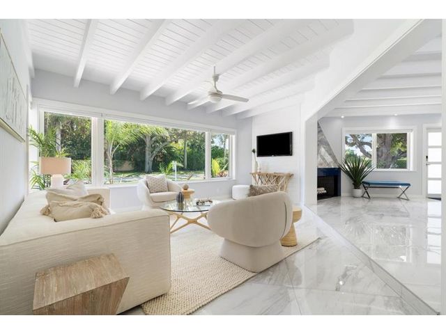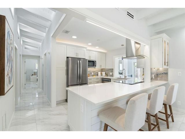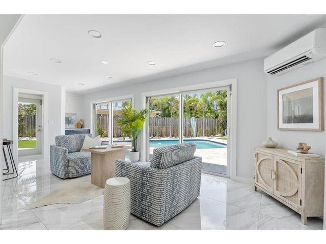 Mid Century Modern Frank Lloyd Wright inspired home meets Key West Salt Life Living in this amazing 3 Bedroom 2.5 bath home in LHP. Open & airy this home features vaulted tongue & grove exposed ceilings & a wood burning fireplace. It has new 33" x 33" ceramic tile, new impact windows & doors, PVC & copper plumbing, new electrical wiring along w| a new underground FPL service line, new bathrooms & kitchen along w/ 3 sliding Glass Doors. The Kitchen has soft close cabinets above & below accent lighting. New heated pool out back with Travertine pavers. The yard features over 150 newly planted trees, scrubs & flowering plants. stepping stones around the perimeter of the home w\ 2 mango trees that produce tasty mangos! All improvements have been Permitted.