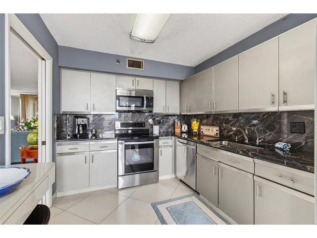 Stunning Golf Course Views from this 6th Floor Gem! Beautifully upgraded 3BR, 2.5 BA Brittany model. This home feat. 24" laser-cut tile flooring, private foyer entry, panoramic views of the Boca Pointe Clubhouse, golf course, & sparkling city lights. Kitchen boasts custom cabinetry, granite counters & SS appl. The guest BR includes an en-suite bath & stylish marble 1/2 Bath for guests. Open floorplan, oversize primary bath w/ circular spa tub & huge walk-in closet. 2 lrg Encl Balcony's to Enjoy serene golf course views. A/C 2017. Close proximity to the resort-style pool! The building is professionally managed on-site, financially secure, & highly sought-after. One of Boca Raton’s most desirable communities! Selling Furnished - $50K Ethan Allen Furn & $10K Persian Rug included!