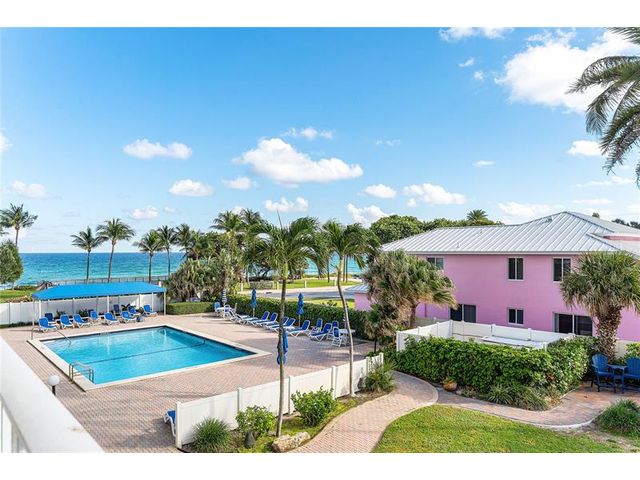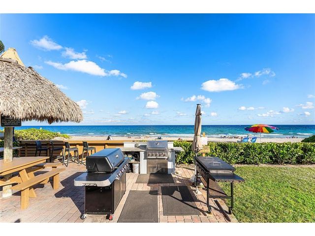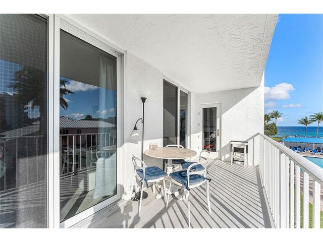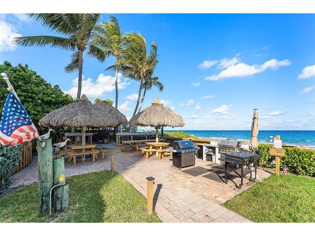 Enjoy your own private beach at this true slice of paradise! This beautifully updated condo in Ocean Harbor offers impact windows, tile flooring, private laundry, a large floorplan & a spacious balcony with serene pool, ocean, & garden views. Ocean Harbor is one of the most sought-after buildings in Deerfield Beach, featuring a private deeded beach with gated entry, a large tiki hut with 2 Grills, Blackstone, picnic and bar-style seating, a heated pool, full gym, recreation room, billiard room, and your own private storage unit. Located in an unbeatable oceanfront setting, you're just a short walk along the ocean to Downtown Deerfield Beach with shops, restaurants, bars & the world-famous International Fishing Pier. There is also a pickleball court & a playground right across the street!
