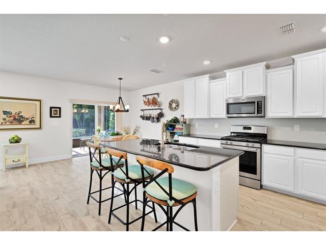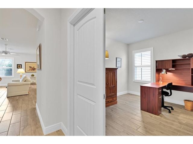 Welcome to 55+ Harmony Reserve, a premier gated community surrounded by a tranquil preserve offering an active lifestyle & amenities. This 2 Bedroom, 2 Bath plus FLEX room features impact windows, tankless water heater, porcelain tile floors thru-out, plantation shutters, island kitchen, granite countertops, white cabinetry, nice pantry & natural gas cooking. The dining room offers custom window treatments & a view of the lanai & preserve. The main bedroom offers a large walk-in closet & walk-in shower. Outside, enjoy views of the Preserve on a covered, screened lanai & an extended paver area.