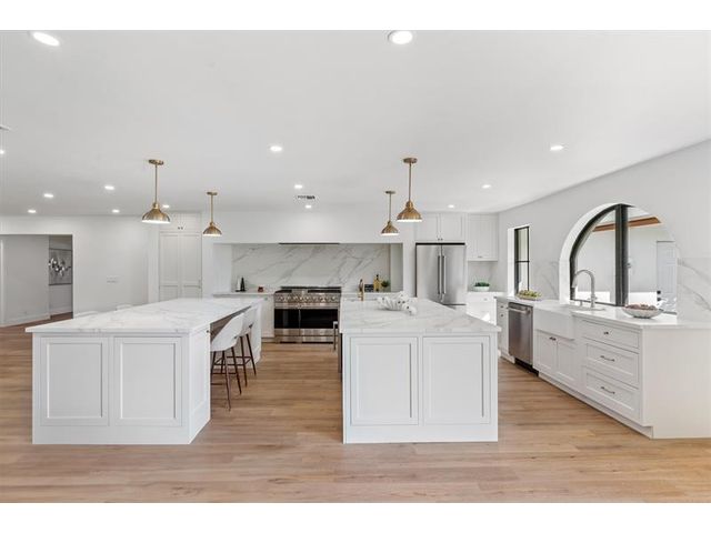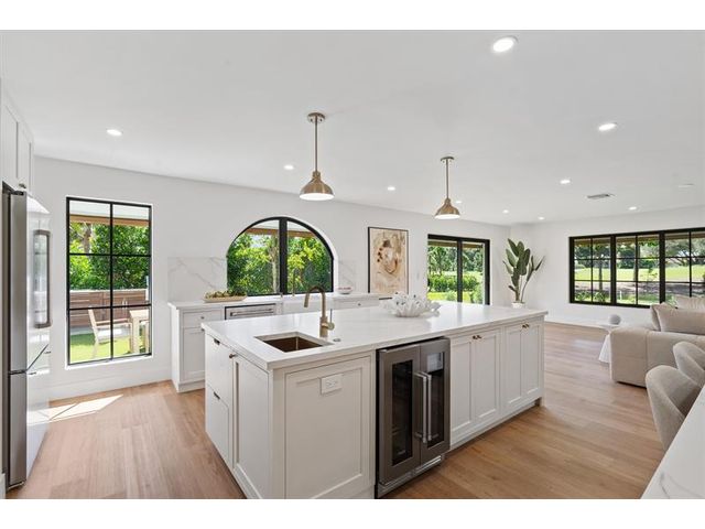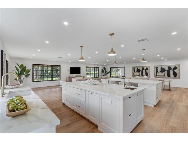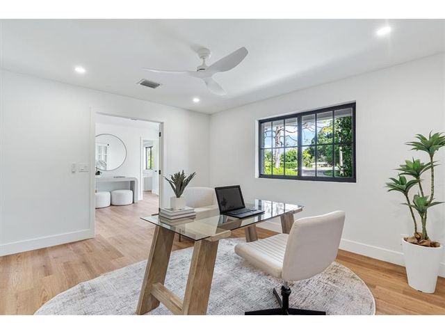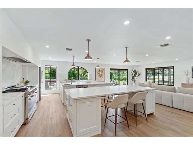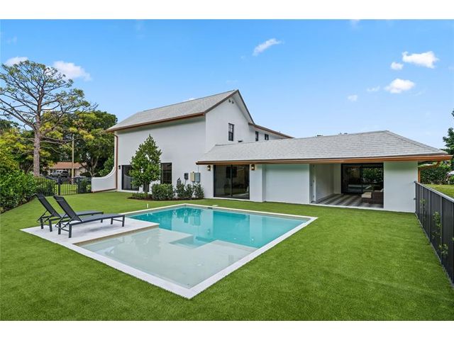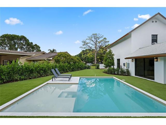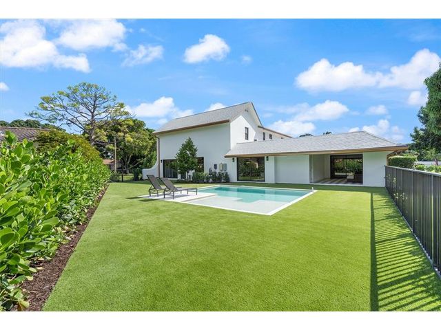 Exquisitely renovated Modern Tudor on a lush ½-acre golf-front lot in the heart of PBG. 5,018 SF | 5 beds (Incl. 2 Master Suites) | Office | Gym | 4.5 baths. Gourmet kitchen with dual islands, Neolith porcelain counters, custom cabinetry, pro appliances & butler’s pantry. Resort-style backyard features new saltwater pool with Carrara marble coping, outdoor kitchen, gas fire pit, artificial turf & mature mango/avocado trees overlooking BallenIsles Country Club. 2022 roof, impact windows, doors and garage doors = max insurance discounts. Recently appraised at $3.8M & priced to sell. No HOA! Walk or golf-cart to PGA Commons, Midtown, groceries & restaurants. 5 min to I-95/Turnpike. 15 min to PBI & DT WPB. Rarely available, fully renovated Hickory Drive masterpiece – move-in ready luxury!