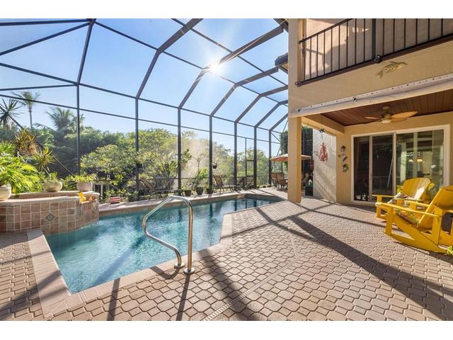 Stunning Waterfront Residence! This beautifully appointed 4-bedroom, 3-bath home offers 3,122 sq. ft. of refined living and exceptional indoor-outdoor space. Situated on a serene canal, the property boasts direct water access and a private dock accommodating a 40’ vessel—a boater’s dream. The inviting open layout includes a gourmet kitchen with rich cherry cabinetry, granite countertops, a center island, and a large snack bar. The expansive second-floor primary suite is a private retreat featuring a separate office, wet bar, and cozy fireplace, all with tranquil pool and water views. Enjoy year-round outdoor living with a heated pool and spacious deck area. Meticulously maintained with numerous modern upgrades, this waterfront gem is move-in ready. Don't miss this opportunity!