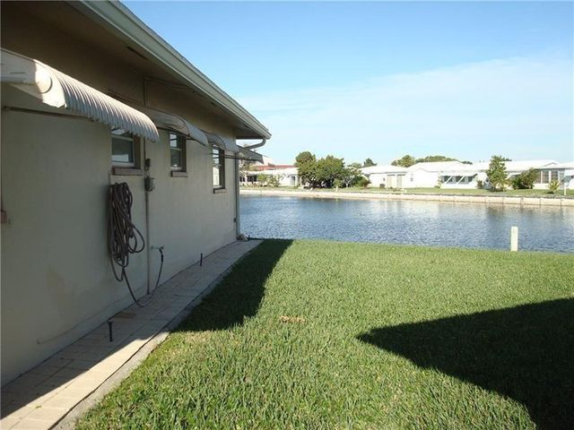 Spectacular Lake View in a Premier 55+ Community! Enjoy peaceful lakefront living and beautiful sunsets in this beautifully maintained home featuring a remodeled kitchen & baths, upgraded appliances, and tons of cabinet space. Spacious layout with tile floors throughout, large 30x10 family room, and oversized bedrooms with crown molding. Outside features brick paver driveway/patio, accordion shutters, awnings, and a large oversized lot. Plus—a newer AC, community pool, and clubhouse! Shows beautifully. Message for details!