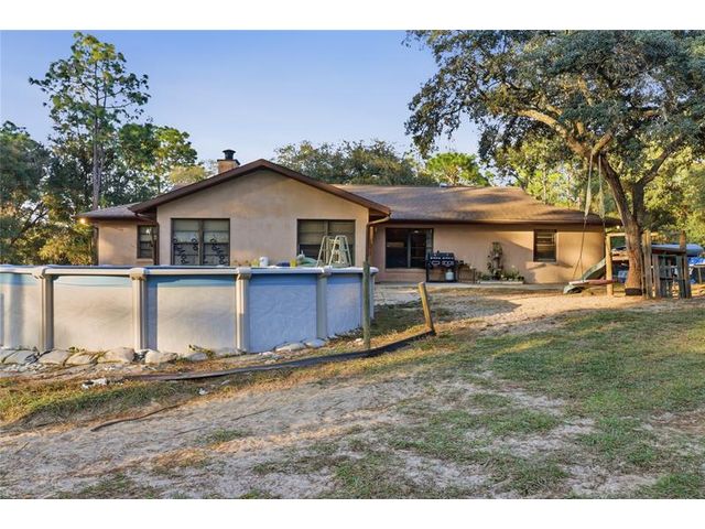Homestead heaven with privacy, space, and nature! This beautifully maintained 3 bed, 2 bath home offers 2,000+ sq ft and sits against the Citrus Wildlife Management Area—truly a bird-watcher’s dream. Enjoy vaulted ceilings, a split floor plan, dual closets in the primary, and a large laundry room. Outside features a 24' above-ground pool, fire pit, multiple sheds, new drain fields, plus a 30' x 12' chicken enclosure for 20+ birds. Banana trees, a fig tree, and beauty berries complete the setting. The perfect peaceful escape—bring your HORSES!