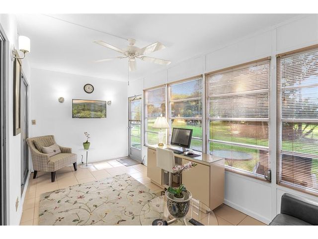 Immaculate and move-in ready first-floor condo offering 1,000 sq. ft. of bright and comfortable living space. This spacious unit features 2 bedrooms, 2 full bathrooms, and a generous sunroom that can also serve as an office. Beautiful, shiny tile flooring flows throughout the home. Being sold fully furnished — all furniture and paintings are included in the price. Parking #12 is conveniently located right in front of the building. Enjoy the lowest HOA fee in the Village at just $609. Electric Panel was replaced in 2024. Only 4 miles to the beach! Century Village offers exceptional amenities including free transportation to shopping plazas, tennis courts, pickleball, a Fitness Club with sauna, and both indoor and outdoor swimming pools. This beautiful and safe home is waiting for you!