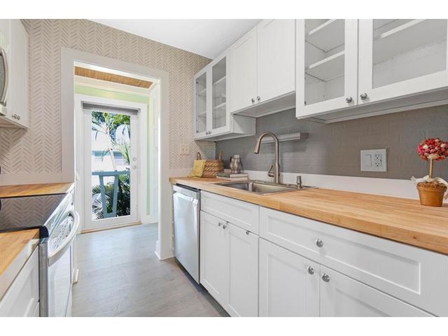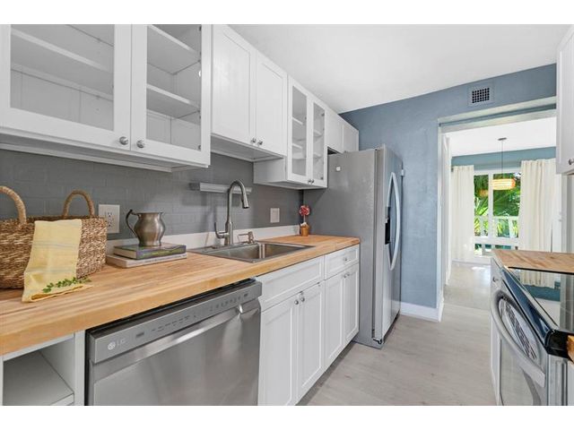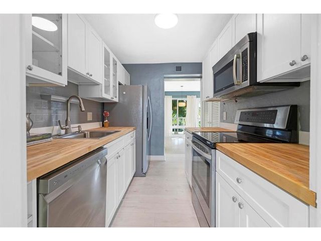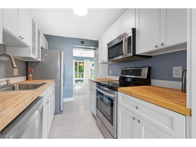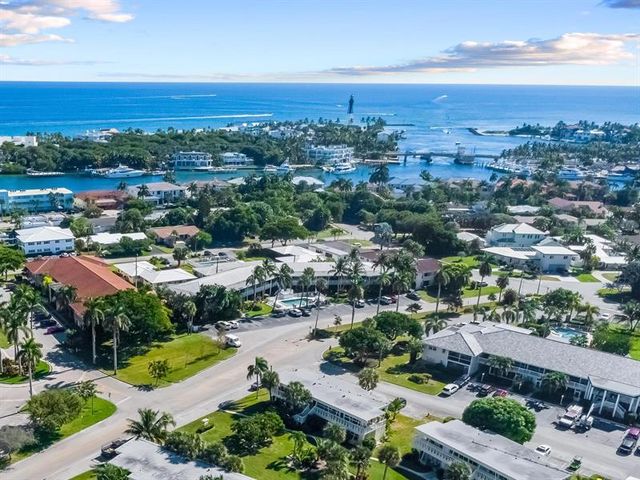 WOW! GREAT 2 bedroom 2 full bath condo in Lighthouse Point Marina area! Steps to the marina, the Nauti Dawg, Cap's Place, and surrounded by community of single family LHP homes..all good places to walk or bike! Beach and Hillsboro Inlet Park and Lighthouse are very close..see map in photos. All terrazzo floors thoughout (easy cleaning), all impact windows and doors, all stainless appliances with butcher block counters and white wood cabs. LOTS of natural light, with both front and back entrances easy to get to from parking. CORNER unit means you have a wraparound corner balcony so lots of extra outside space! Pool + garden views, avocado tree adds fruit and privacy. A great unit in a well managed association! Pets under 15lbs, imm rent-min 60 days, 650 score, assoc has reserves!