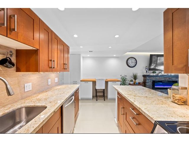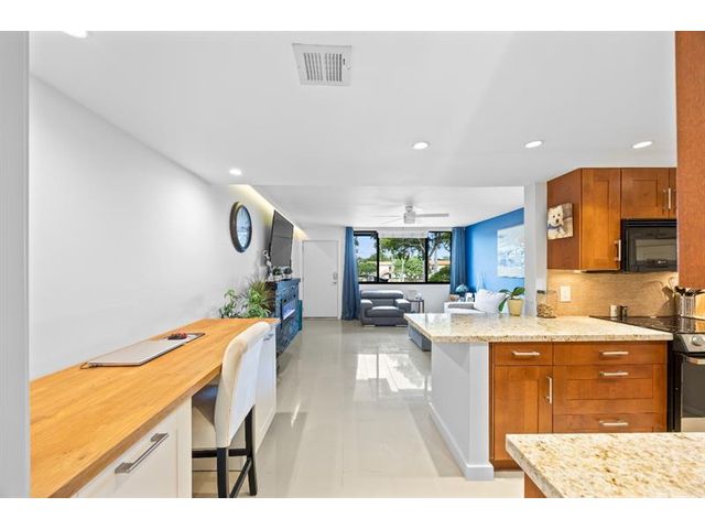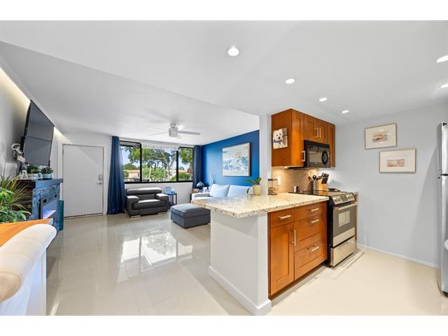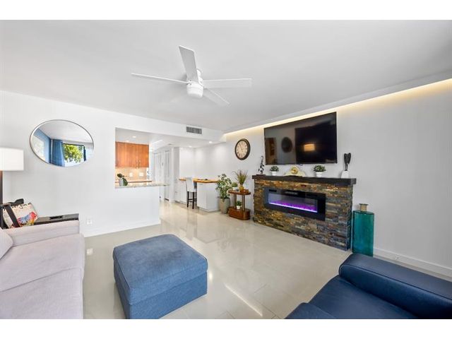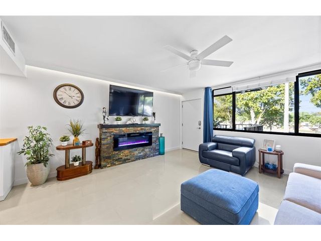 Absolutely stunning, professionally designed Wilton Manors waterfront condo within walking distance to Wilton Drives restaurants, clubs, and shops — fully upgraded and move-in ready. Features ceramic tile throughout, an open kitchen with granite countertops, rich wood cabinetry, and stainless appliances. The gorgeous bath is beautifully and modernly designed. This fabulous unit includes impact windows, a gorgeous custom electric fireplace, and a custom built-in desk with cabinets—perfect for a home office plus a second-floor corner unit offering style, privacy, comfort, and modern living. Great complex with onsite laundry, newly remodeled and designed resort style pool area, gym, and scenic riverfront views.