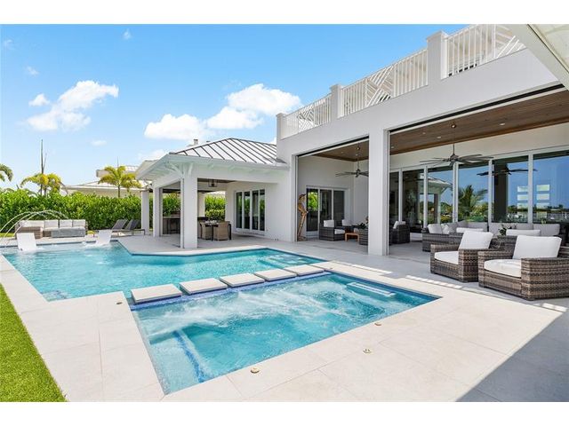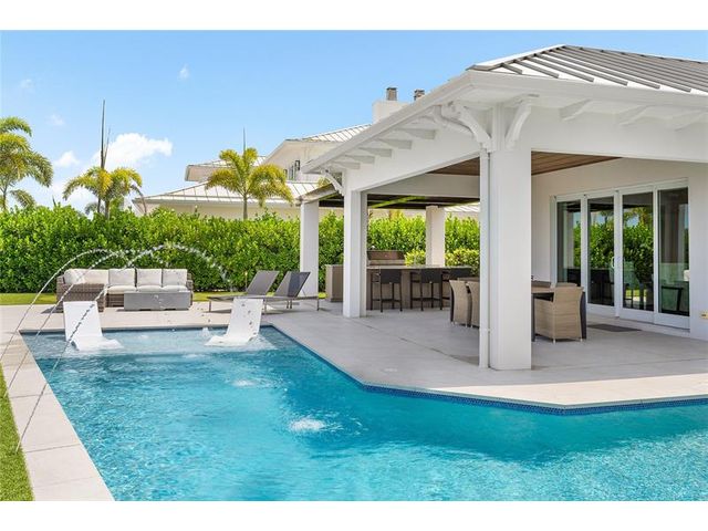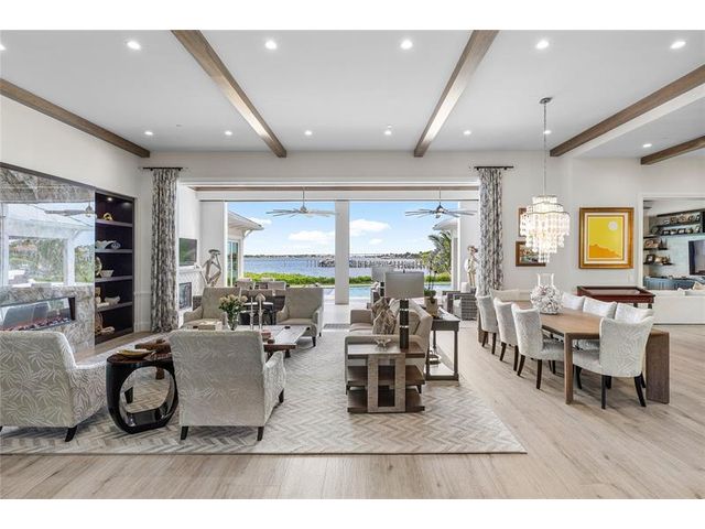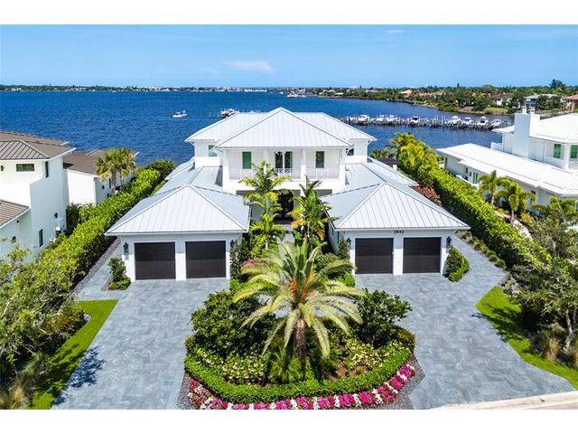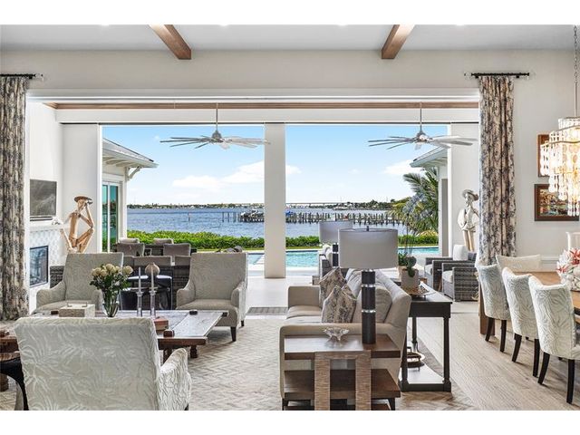 Discover Le Lucienne in the incomparable Floridian National Golf Club. Breathtaking St. Lucie River views w/ direct ocean access. This flawless custom residence features soaring ceilings, abundant natural light, & gourmet kitchen with top-tier appliances flowing into spacious living/dining areas—all overlooking the pool & river. Serene ground-floor primary suite offers panoramic river views, spa-like bath, his/her closets, & private patio access. Upstairs: a refined sitting area w/ wet bar & 3 en-suite guest rooms, maximizing stunning water vistas. Outdoor paradise includes a grand loggia w summer kitchen, gas fire pit, resort-style pool, & private putting green. Undoubtedly, a refined experience unlike any other. Four climate controlled garages spaces w lifts in two of the bays.