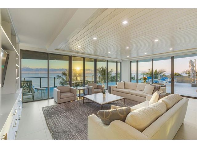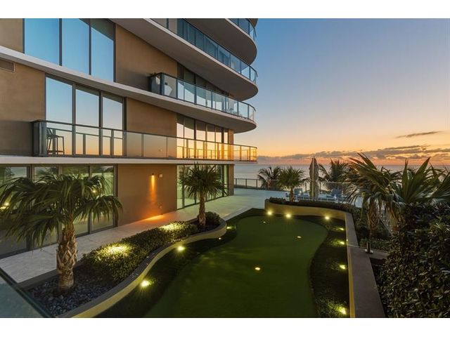 Unlike anything on the market this 4 bedroom 4.5 bath SE corner residence boasts a 3,900 sq ft oceanfront terrace, a private pool, custom putting green and summer kitchen. A one of a kind floor plan that lives like a single family home with resort amenities. The open kitchen has upgraded cabinetry, Sub-Zero and Miele appliances, double ovens and a walk-in pantry. The main living area features custom millwork, entertainment center, and built in bar with Sub-Zero wine storage. The primary bedroom has a large walk-in closet and spacious bathroom. There are 3 guest rooms with ensuite bathrooms. The laundry room is equipped with double washer/dryer, cabinetry and utility sink. The unit has a bonus room set up as a small gym with a peloton and built in storage. Sabbia Beach was built in 2019.