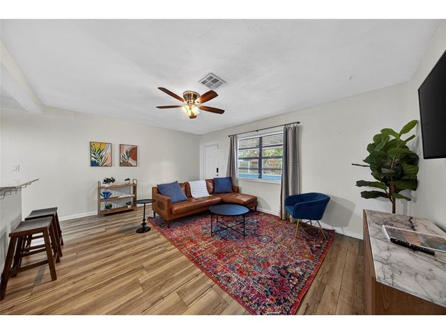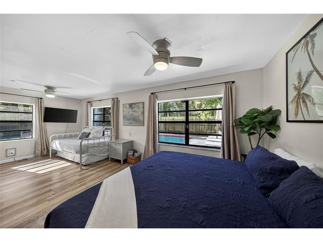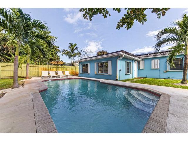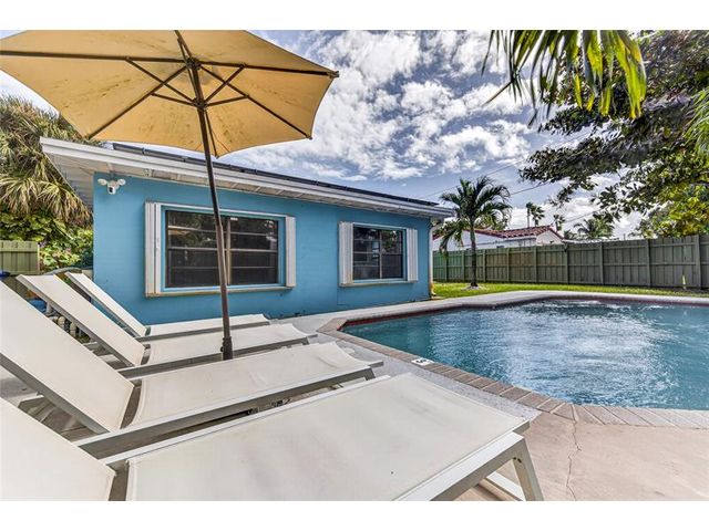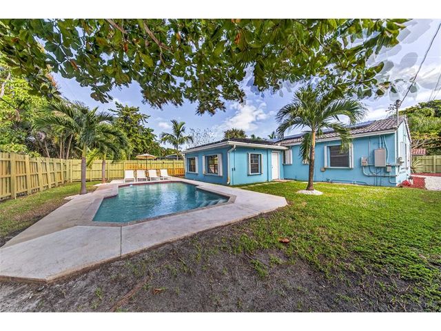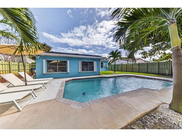 Come see this solar-powered 3 bedroom/ 2 bath home with lovely Pool, Carport and Screened porch/Florida Room. Relax and entertain in your Private backyard and pool surrounded by tropical vegetation. Property is fully fenced. Carport and driveway space for three cars. Solar panels on the roof help defray electrical costs. Very large primary bedroom suite with built in closets and storage and a large ensuite bath with a tub and separate shower and full-sized laundry and a view of the pool. Located on a quiet street in close proximity to Wilton Manors, downtown Fort Lauderdale. Short drive to beach, airport and highways. Near new Gardenia townhouses. Furniture negotiable. Currently operating as an Airbnb.