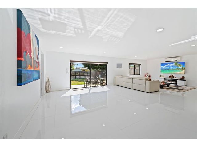 Completely remodeled 4BR/2BA Hollywood Hills home with 2-car garage on a over sized lot. Features 4x4 tile flooring throughout, new interior doors, open-concept kitchen with quartz countertops and Samsung stainless steel appliances. Major systems updated: new PVC sewer line, drain fields, incoming water line, electrical panel, Mitsubishi high-efficiency AC, Reconditioned flat roof, hurricane-impact windows and doors, wireless garage opener, and new security cameras inside and outside the home. Spacious living/dining with Florida Room, updated bathrooms with rain shower heads and handheld wands, built-in speaker lighting, and motorized blinds. Expansive backyard ready for a pool, with a back street alley providing easy parking for RV or boat access. Furniture optional. No HOA.