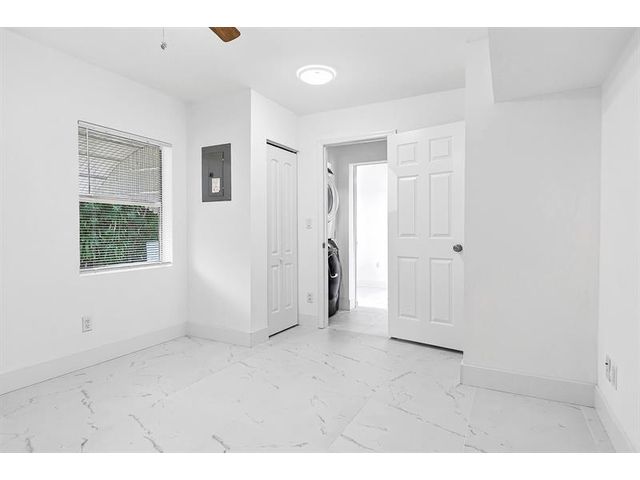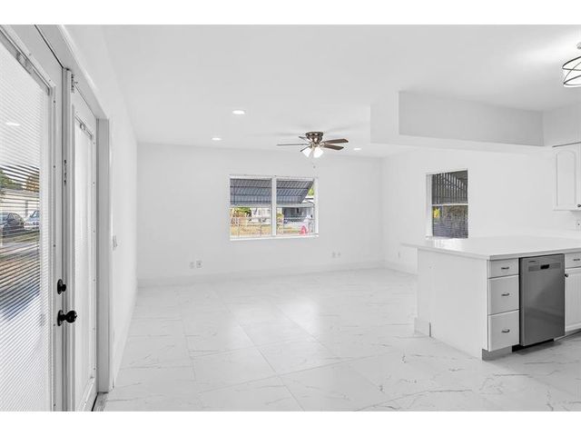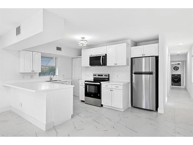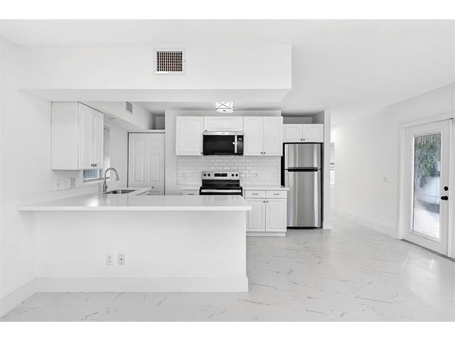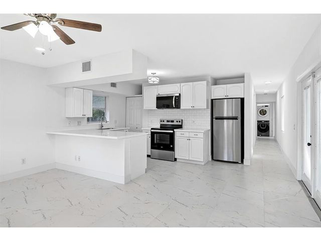 Charming remodeled 3-bedroom, 1-bath home in a desirable no-HOA Lake Worth community. This bright, move-in ready property offers new large-format tile flooring, fresh interior/exterior paint, updated lighting, and added recessed LEDs for a clean, modern feel. The upgraded kitchen features new stainless steel appliances, white cabinetry, a subway tile backsplash, and a spacious peninsula. Additional highlights include a 2017 outdoor A/C, 2018 indoor unit, newer tankless water heater, and a third bedroom with a private exterior entrance and new concrete slab for extra living space or patio use.