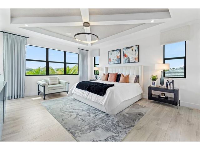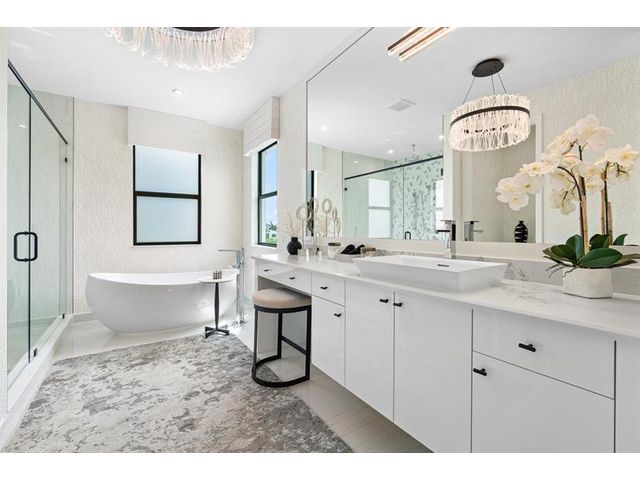 This professionally decorated Santa Monica model home at Solana Bay in Avenir is a dream come true, embodying the best of the Florida lifestyle. Spanning approximately 4,096 square feet with a striking Transitional elevation, the two-story residence features 5 bedrooms, 6 baths, homebar, balcony, and an oversized loft, providing abundant space for guests. The lakefront location and included custom pool create a private oasis for relaxation and entertainment. An abundance of natural light makes the interior feel welcoming and open, complemented by a three-car garage and luxurious "his and her" baths in the primary suite. Located within the gated community of Solana Bay, this home offers both peace of mind and unparalleled comfort.