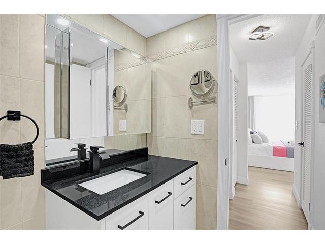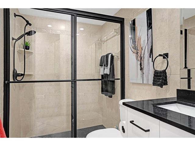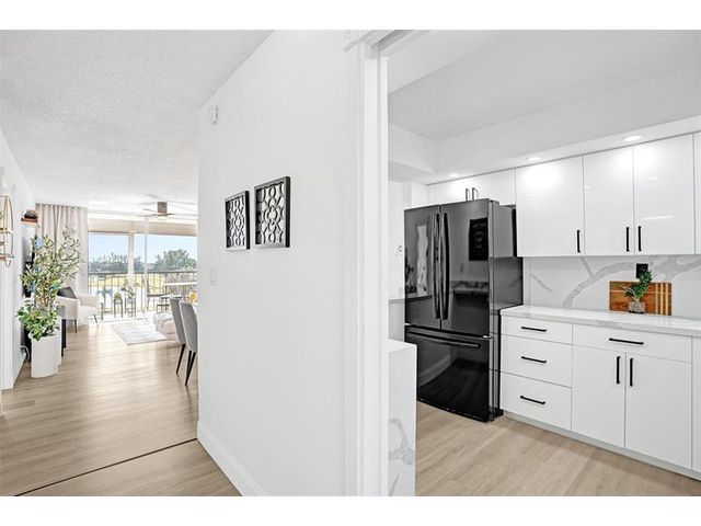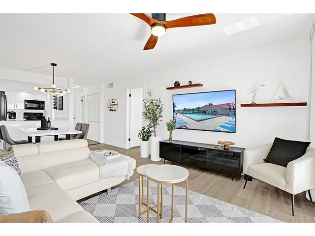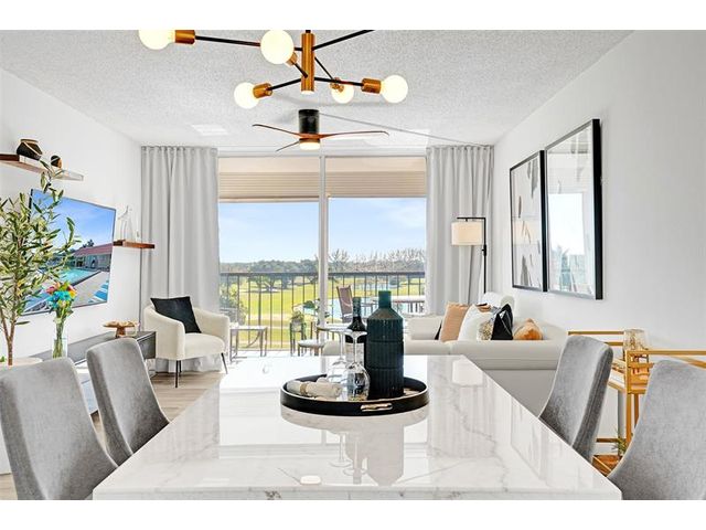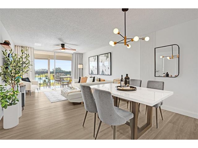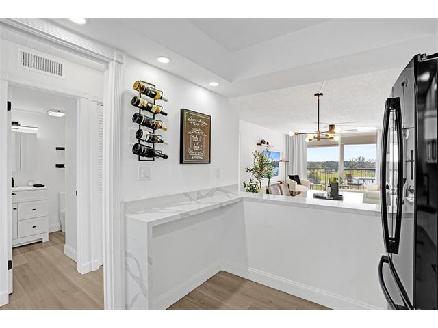 Stunningly remodeled 1 bed, 1.5 bath Penthouse condo in 55+ Hollybrook Golf & Tennis. Gourmet remodeled kitchen with new countertops, cabinetry, and top-of-the-line appliances, and water filtration system under sink and refridgerator. Updated bathroom, newer wood and ceramic floors throughout, and refreshed lighting. Impact glass in the bedroom for glare reduction and energy efficiency. Enjoy sweeping views of the pool, lake, golf course, and tennis courts. Plus, free community golf adds to the lifestyle. A bright, contemporary retreat in a premier 55+ community—schedule your tour today, and make this home your very own!