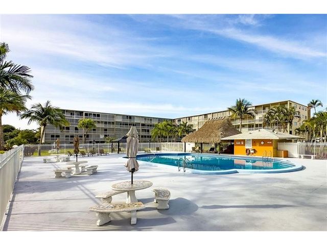 Bright and spacious 1-bedroom, 1.5-bath condo in a friendly 55+ Hollywood community. This move-in-ready top-floor unit features a retro kitchen with newer appliances, a well-kept vintage bathroom, and a large walk-in closet for great storage. Enjoy peaceful views of the courtyard and pool, plus plenty of natural light throughout. A clean, comfortable home with classic charm and lots of potential to make it your own. Association requires MINIMUM CREDIT SCORE 675!