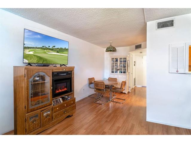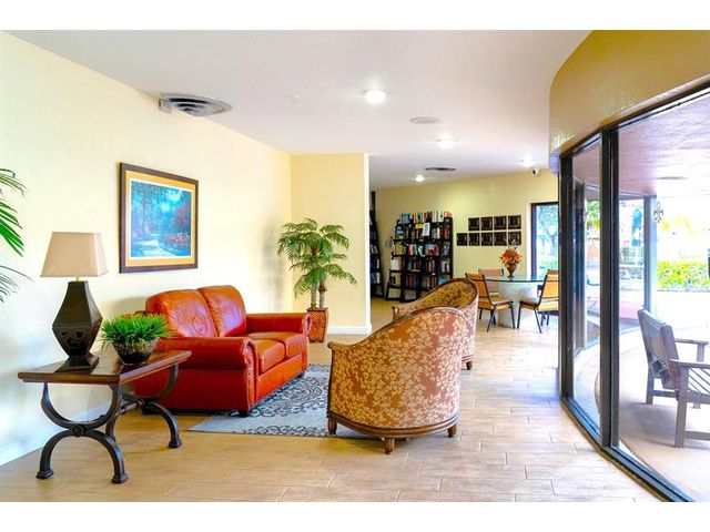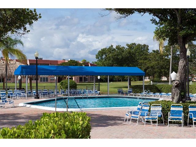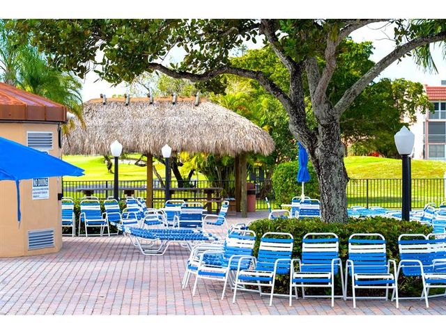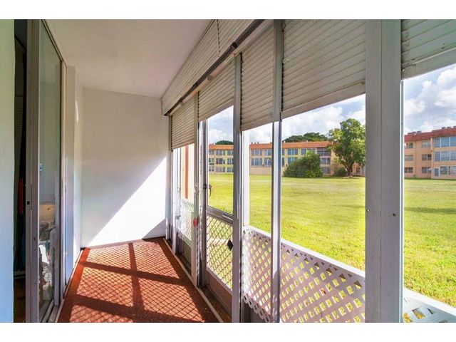 Discover comfort and convenience in this charming 1-bed 1-bath ground-floor condo in the desirable 55+ community of Sunrise Lakes Phase 3. The unit features a spacious bedroom with ample closet space, a well-appointed kitchen with a two-door refrigerator, and a dining area that opens into a bright living room with beautiful wood flooring. The enclosed patio is fully screened. This vibrant community offers excellent amenities, including a golf course, indoor and outdoor pools, recreation and billiard rooms, a fitness center, library, movie cinema, picnic areas, 24-hour security and more. Manicured lawns and peaceful ponds provide a pleasant setting for strolls. A variety of social activities—clubs, bingo, dances—create a lively and engaging atmosphere. Emotional Support Animals are allowed.