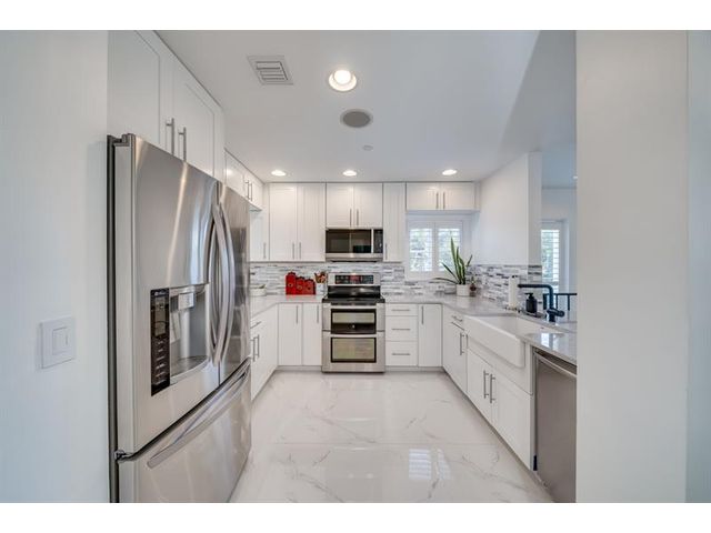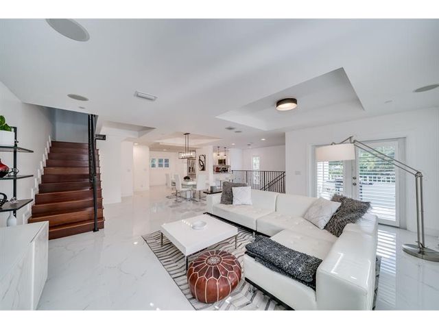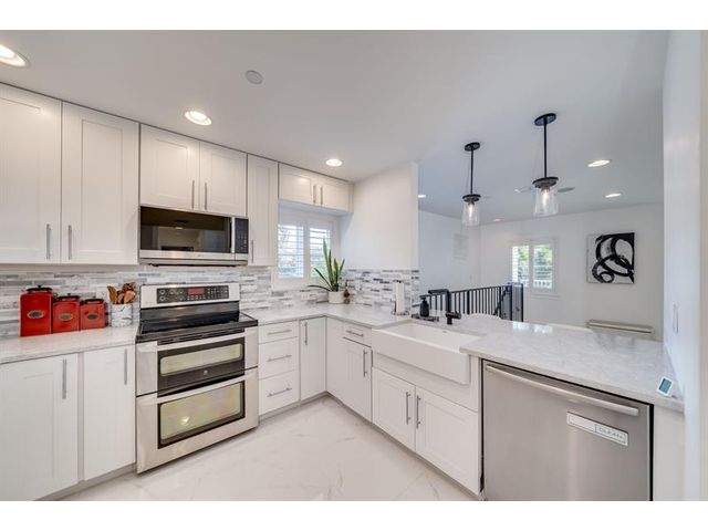 NO HOA FEES + Ultra-Modern Updates. Largest home in an exclusive 3-unit community with 2,800+ sq ft under air. This 3 bed, 3.5 bath end-unit includes a private garage and offers rare privacy with walkable access to shops, restaurants, salons, grocery stores and more. Features oversized marble-look ceramic tile throughout, Brazilian hardwood stairs, tray ceilings, abundant natural light and built-in surround-sound. Updated kitchen with stainless steel appliances and modern cabinetry. Two private balconies, impact windows, whole-house water softener and new third-floor HVAC complete this high-end home.