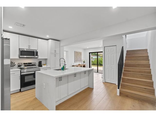 Discover the essence of luxury waterfront living in this fully renovated and professionally designed Deepwater home. Move in with ease — this fully furnished turnkey 5BD/3BA residence sits on an oversized ~12,000 sq ft lot and features a custom chef’s kitchen with quartz countertops, stainless steel appliances, new electrical and plumbing, elegant tile flooring, beautifully redone bathrooms, a new AC, new impact windows and doors, and a new roof. Your outdoor sanctuary awaits with a private inground pool, expansive patio, and lush tropical landscaping ideal for gatherings or quiet relaxation. The 40 ft seawall on a serene turning basin accommodates boats up to ~30 ft, offering effortless access to the water, with no fixed bridges, and an unmatched coastal lifestyle.
