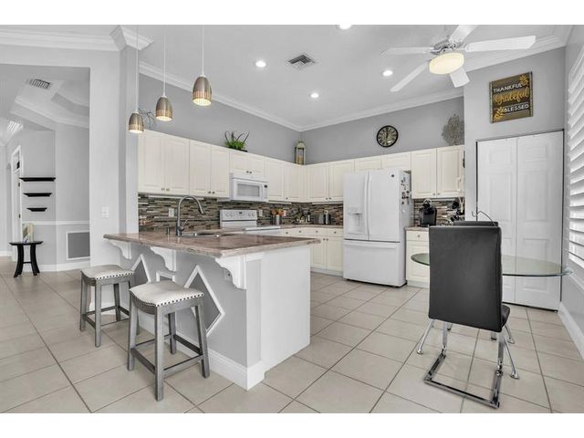 Beautifully maintained 2-bedroom + den home (public records show 3 bedrooms) in the 55+ community of Brittany Lakes at Aberdeen Golf & Country Club. This inviting residence offers a designer kitchen with custom cabinetry, updated backsplash, and in-home laundry, plus a 2017 roof and approx. 3-year-old water heater for added peace of mind. The west-facing layout brings in warm natural light and tranquil views. Once home to former Minnesota Twins pitcher Frank Tokash, the property carries a unique connection to baseball history. Aberdeen residents enjoy golf, tennis, pickleball, fitness, aquatics, dining, and an active social calendar. Mandatory club membership, initial fee plus annual dues. Active 55+ community.