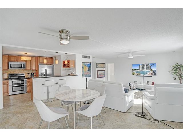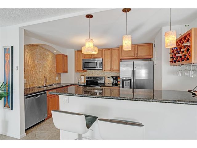Location, Location + Desirable building. The 'Warwick' condominium is just a short walk to the cutest beach town, Lauderdale by the Sea with restaurants, shops & entertainment. Croner unit with 1 Bedroom + 1.5 Bathrooms. Very large balcony facing allowing bright light to come in all day. Open Kitchen with Breakfast Bar and stainless steel appliances. Tile flooring throughout. Impact windows & doors. Washer & dryer is allowed to be installed in unit! Ac & Wh 2023. Parking spot + storage unit + bike storage. Heated pool overlooking the intercoastal. 24/7 front desk. HOA fee includes: cable tv and internet, water, sewer, trash, exterior insurance, property manager, amenities & more. Building well maintained. SIRS & 50 yr milestone have been completed. ESA Pets allowed. Docks rented thru HOA.