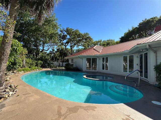 Situated between the Atlantic Ocean and Intracoastal Waterway, this spacious four bedroom two bathroom home offers private beach access and is known for its large mature trees and peaceful coastal setting. This spacious residence features an open floor plan, abundant natural light, and well-designed living areas perfect for everyday living and entertaining. Enjoy the expansive backyard offering privacy and an outdoor shower. This property is on an oversize lot.