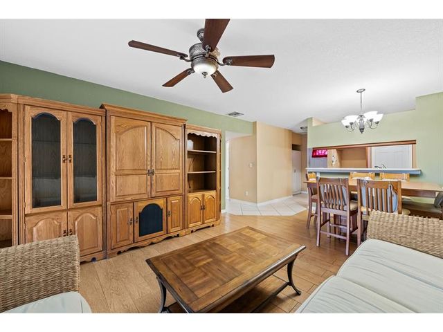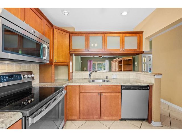 Turnkey and fully furnished 2 bed/2 bath condo in the 55+ community of Hawaiian Gardens. Renovated kitchen and baths featuring wood cabinets, granite countertops, stainless steel appliances and tile backsplash. Open concept dining and living area with wood floors opens out to your glassed porch overlooking the pond and community pool. The bedrooms have hurricane impact windows, tile flooring, and offer optimal closet space. Enjoy peace of mind with a 2020 water heater, 2024 building roof, 2023 elevator, updated plumbing pipes, SIRS completed! Vibrant 55+ community offers a plethora of amenities including: pools, fitness center, library, billiards room, picnic area, and shuffleboard. Laundry room and storage locker by elevator. Rentals allowed right away w/restrictions. 50 year in progress.