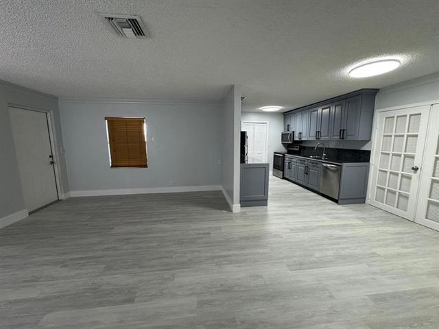 2 beds 2 baths plus extra room with a closet that can be your 3rd bed/Florida room. Newer contemporary kitchen wood cabinets with granite countertops & newer SS appliances. Tile floors in baths & bedrooms. New wood like vinyl floors in living areas. New air conditioning & ducts installed in 2024. New Roof installed 12/21 baths remodeled about 3 years ago. Fenced back yard with large patio, several fruit trees. Circle driveway & carport that fit up to 5 cars. The house comes with hurricane shutters. 2025 water heater. Crown molding. Linen closet in the hallway & inside laundry room. Updated electrical panel. French doors to the Florida room. Access to the patio by the laundry room and the Florida room. Great location on a quiet avenue, close to shopping, gym, restaurants and coffee shops.