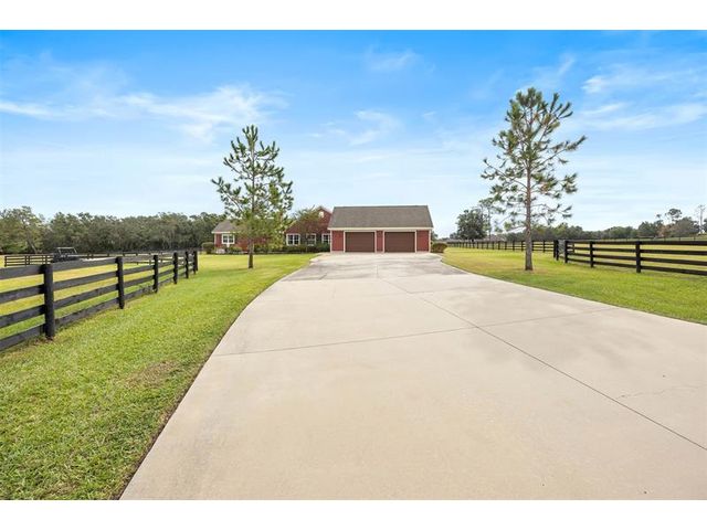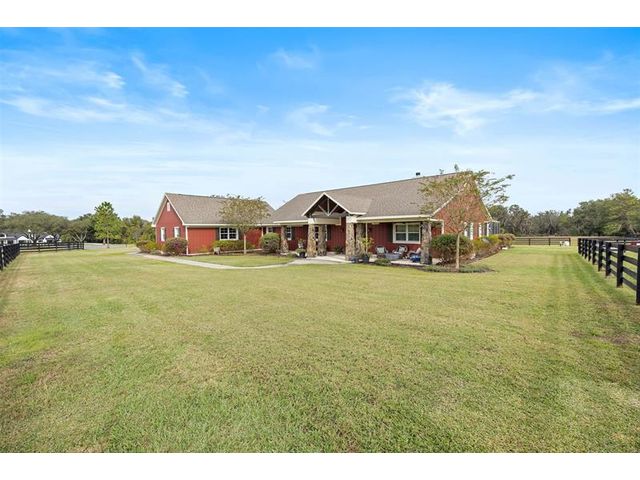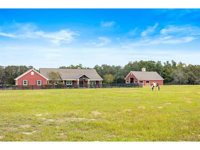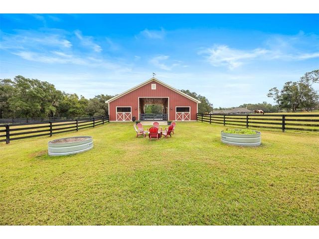 This stunning custom home sits just south of Ocala—The Horse Capital of the World—known for its world-class equestrian farms and facilities. Surrounded by beautiful lakes and the quaint towns of Mount Dora, Eustis, Tavares, and Leesburg, with only 2 miles from Grand Oaks Equestrian Center, and borders the Ocala National Forest with its hundreds of miles of riding and hiking trails. Just 15 minutes away are the Marjorie Harris Carr Cross Florida Greenway and the Florida Horse Park, with even more preserves nearby, plus your very own trail right off the backyard. And for your saddle-bird friends? They will LOVE the bunkhouse. The fully insulated pole barn features A/C, heat, covered trailer parking, an outdoor shower, and a 50-amp RV hookup